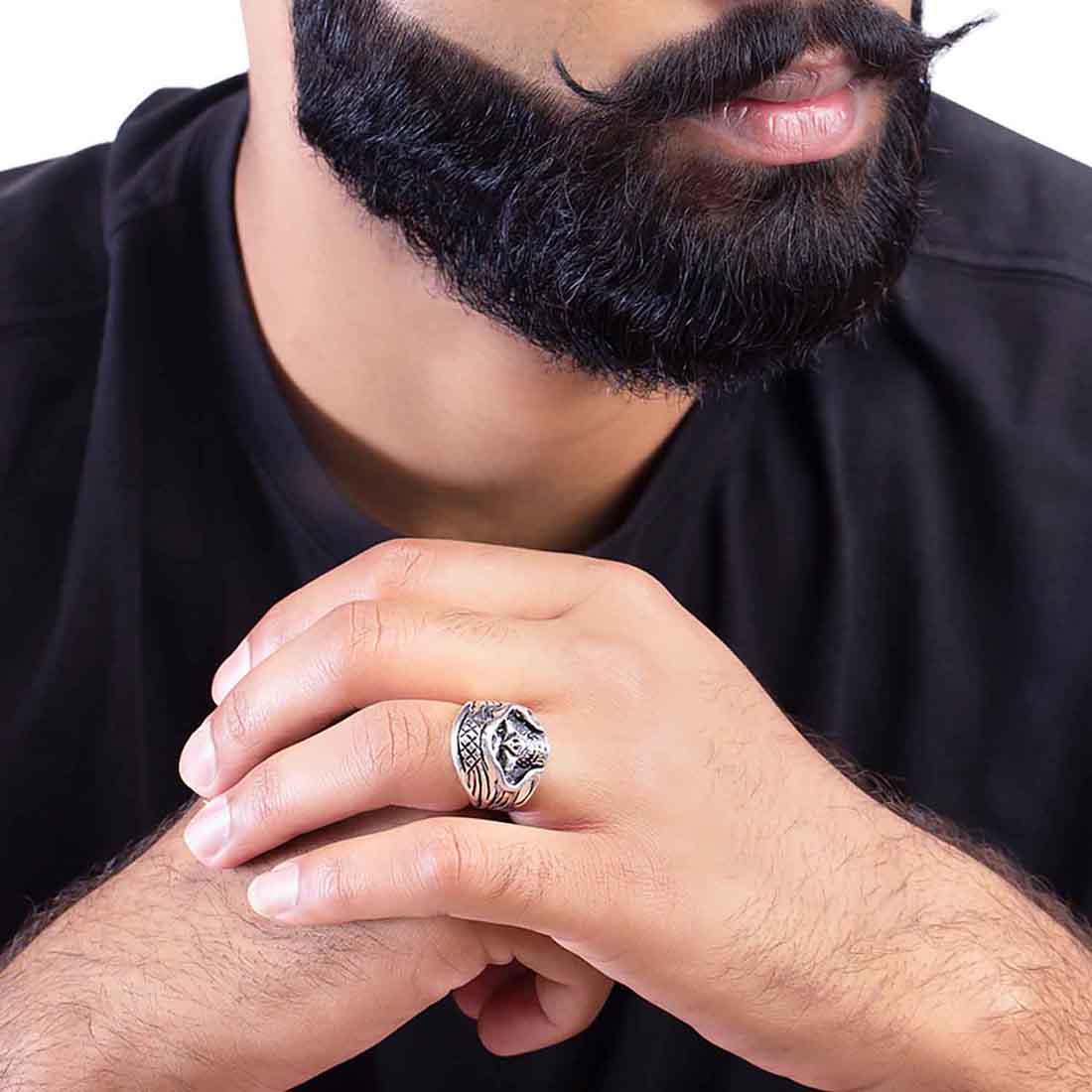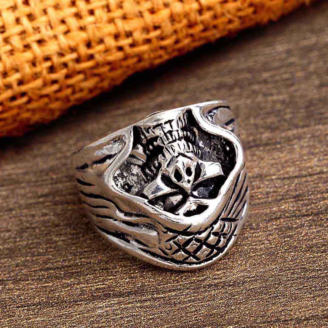 Brass skull helmet ring with oxidized silver plating. A good match for party outfits.