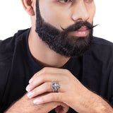 Skull ring for men, made from brass and oxidized silver plated. A good match for party attire.
