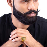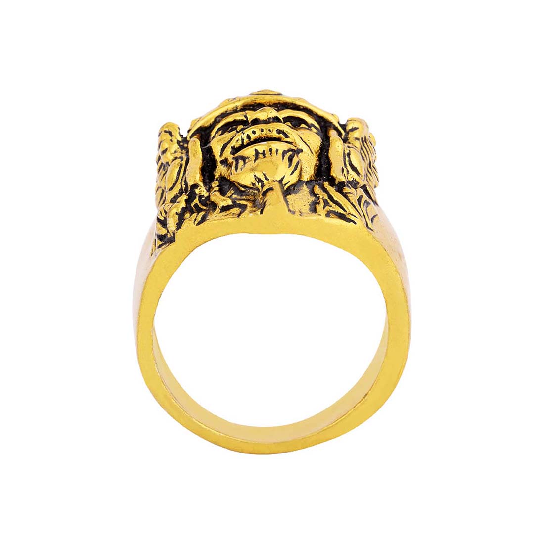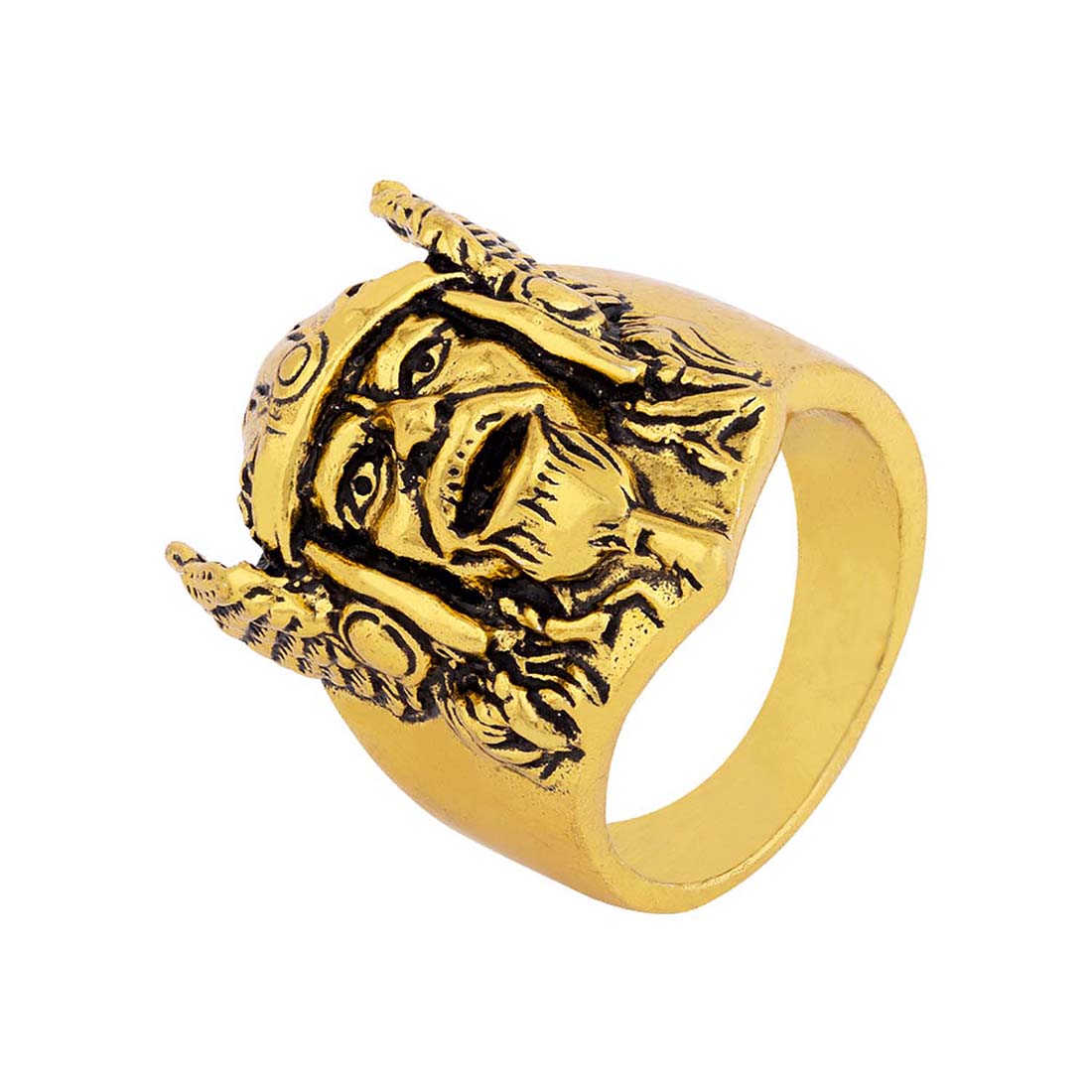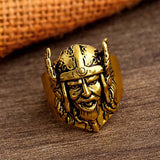 Viking motif ring for men with oxidized gold plating. Made from brass. Good for everyday wear.