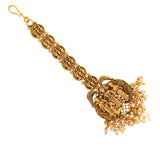 Divine Motifs Brass Faux Peals Gold Plated Coin Maang Tika