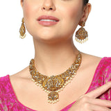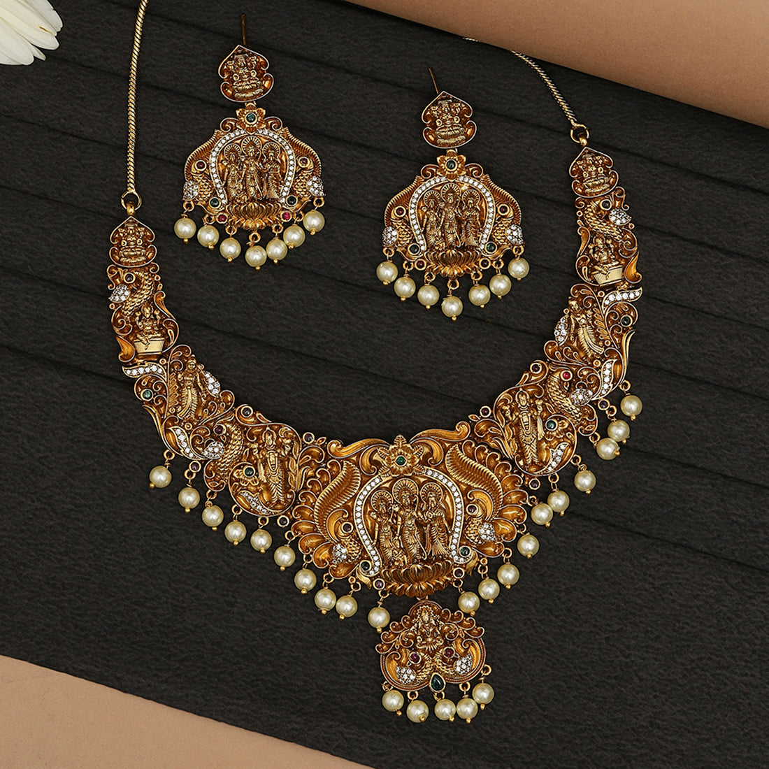 Divine Motifs Faux Pearls Adorned Brass Traditional Gold Plated Jewellery Set