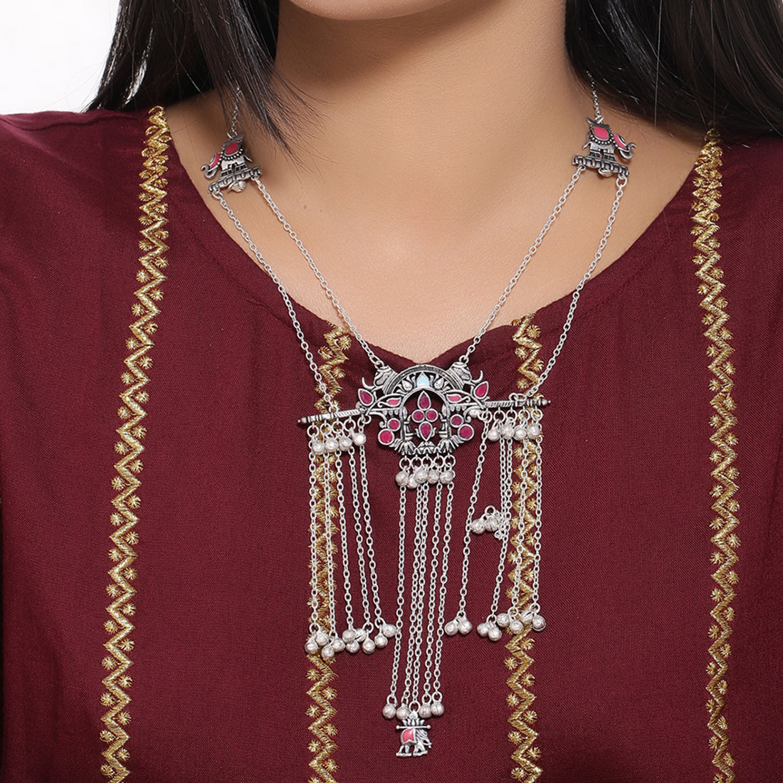Doli Palki and Elephant Motifs Tassels Necklace