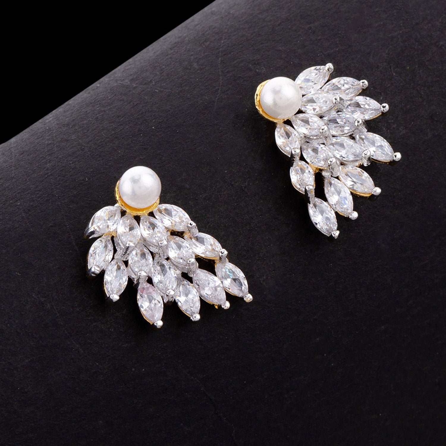 These cute earrings feature a lovely synthetic pearl and it is a great pair of earrings to add to your jewelry collection. These earrings feature cubic zirconia stones. Each one is carefully hand set by master jewelers onto a genuine brass base.