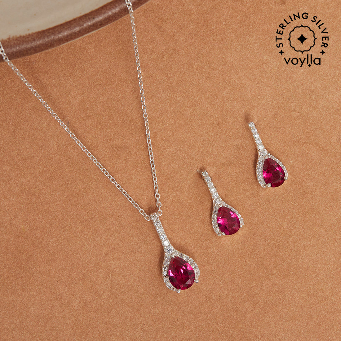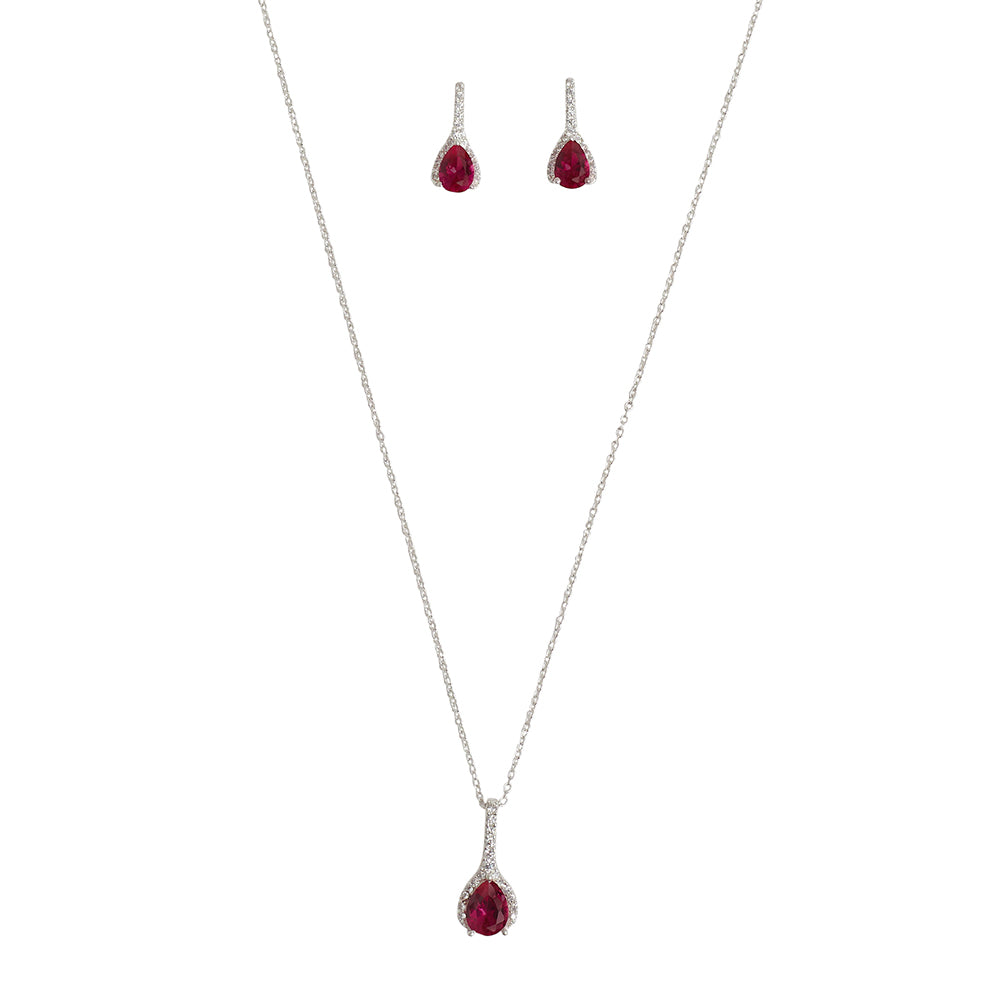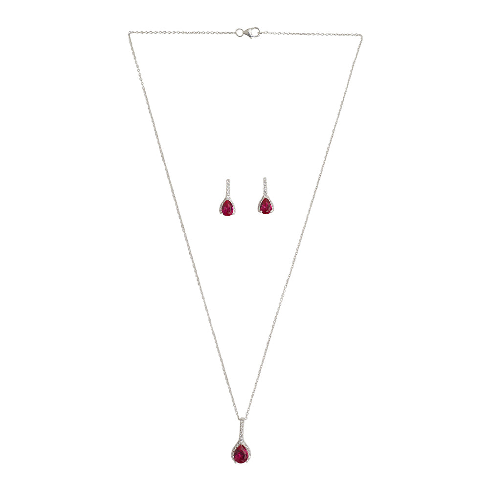 Eclectica Ruby Drop Earrings and Pendant 925 Sterling Silver Set