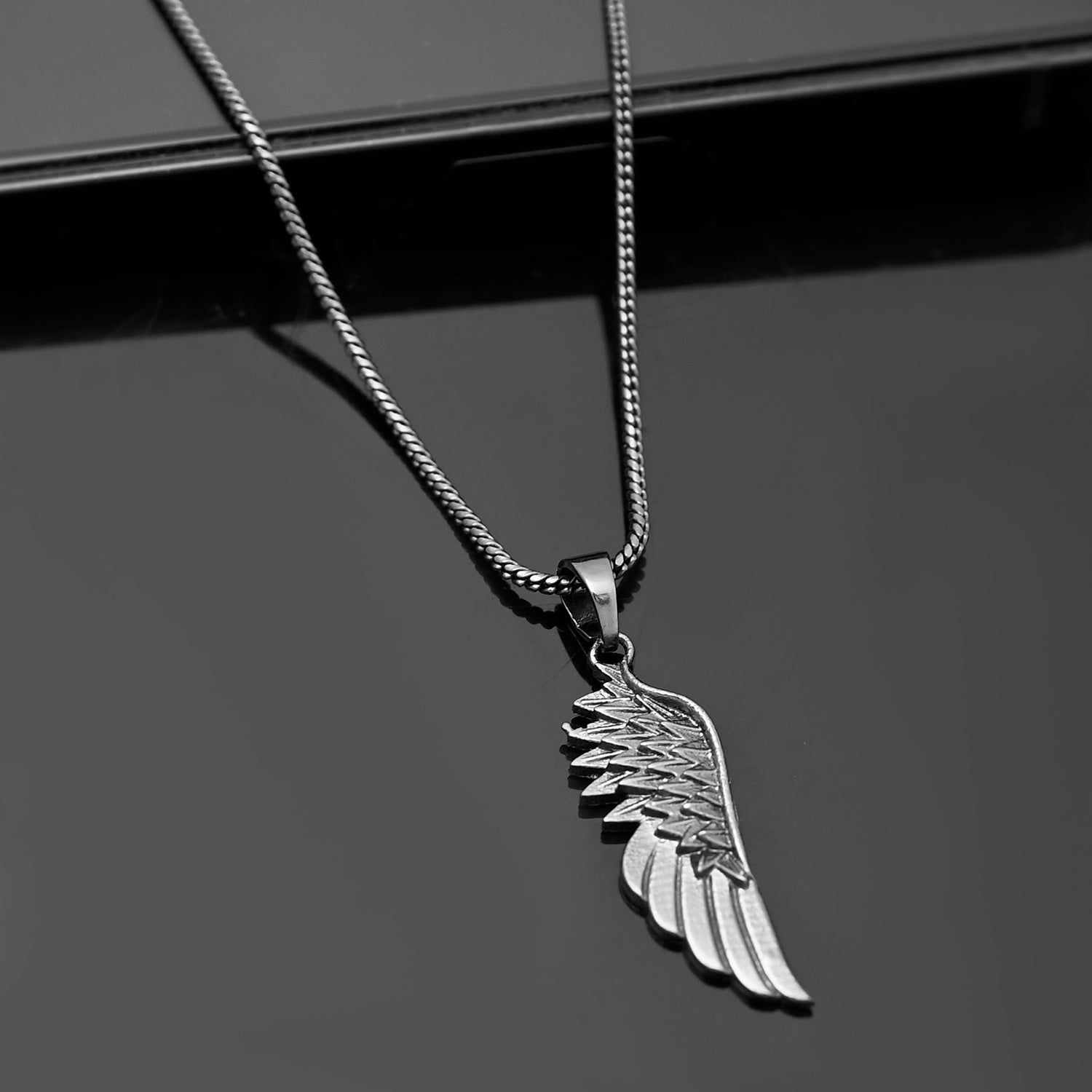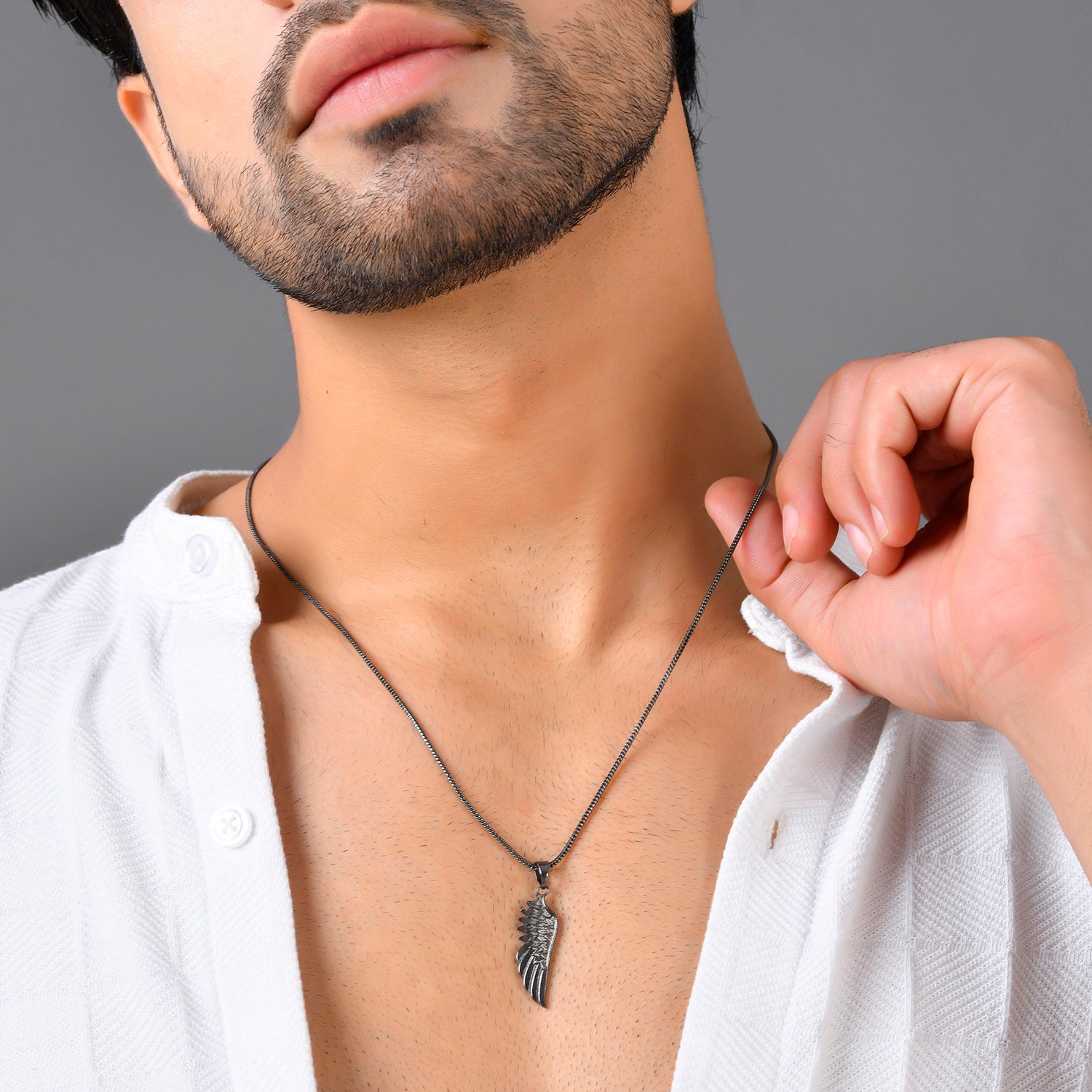 Voylla presents a stunning black pendant for men, meticulously crafted from high-quality brass. This exquisite piece features a feather design, capturing the delicate intricacies and natural grace of a real feather. The black hue of the pendant adds a touch of bold sophistication, making it a versatile accessory suitable for both casual wear and office attire. The intricate detailing of each barb creates a dynamic interplay of light and shadow, enhancing its visual appeal. This pendant is not just a piece of jewelry but a statement of style and elegance. Perfect for gifting, it makes an ideal gift for men, whether for a brother, boyfriend, or as a thoughtful Rakhi gift. Its sleek design and versatile color make it a great addition to any outfit, whether you’re dressing up for a special occasion or adding a touch of elegance to your everyday look. Voylla’s black pendant for men is also perfect for travel, ensuring you always have a stylish accessory on hand. Embrace the blend of artistry and masculinity with this exceptional piece from Voylla.