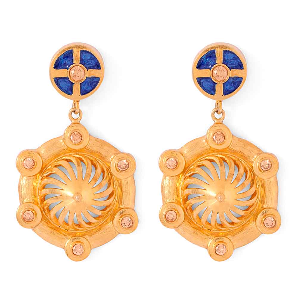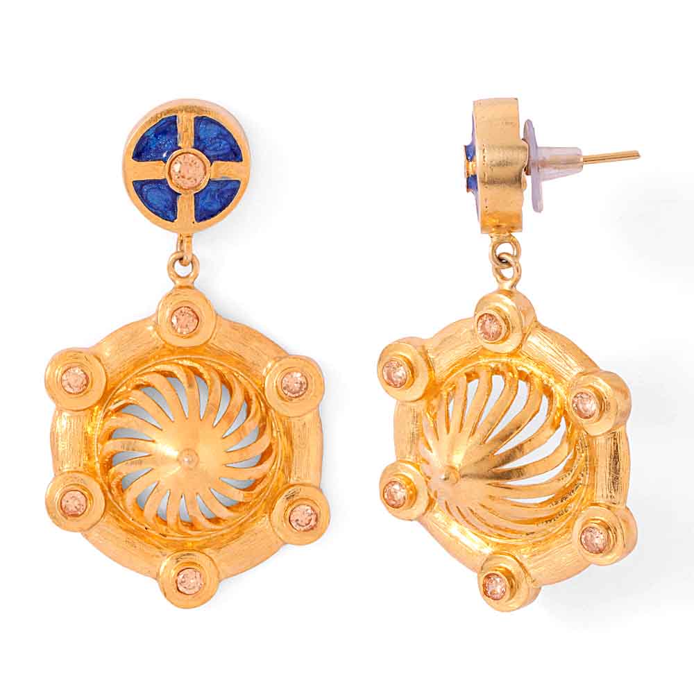 Enticing and imaginative, this amazing pair of earrings is bound to delight everyone. Adorned with ravishing beige American Diamond and blue enamel work, this pair is a perfect fit for your fusion or western wear.