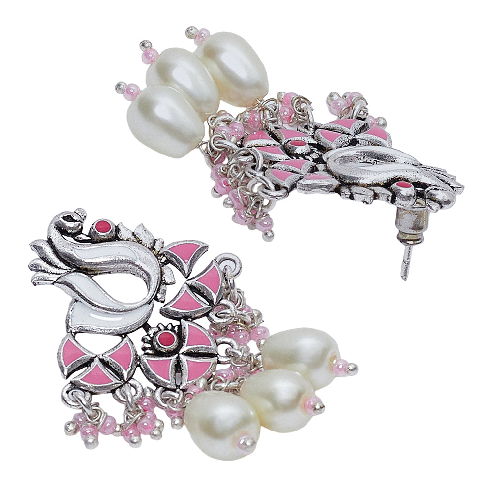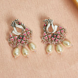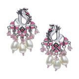 Stand out in the crowd wearing this pair of silver plated earrings from the house of Voylla. Made from brass, these danglers are durable and skin friendly. Wear these danglers with a matching saree or a salwar kameez to get noticed.