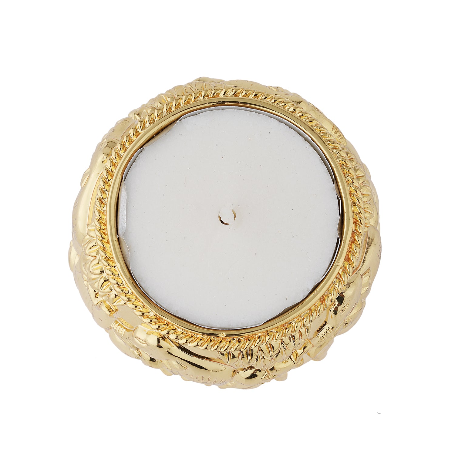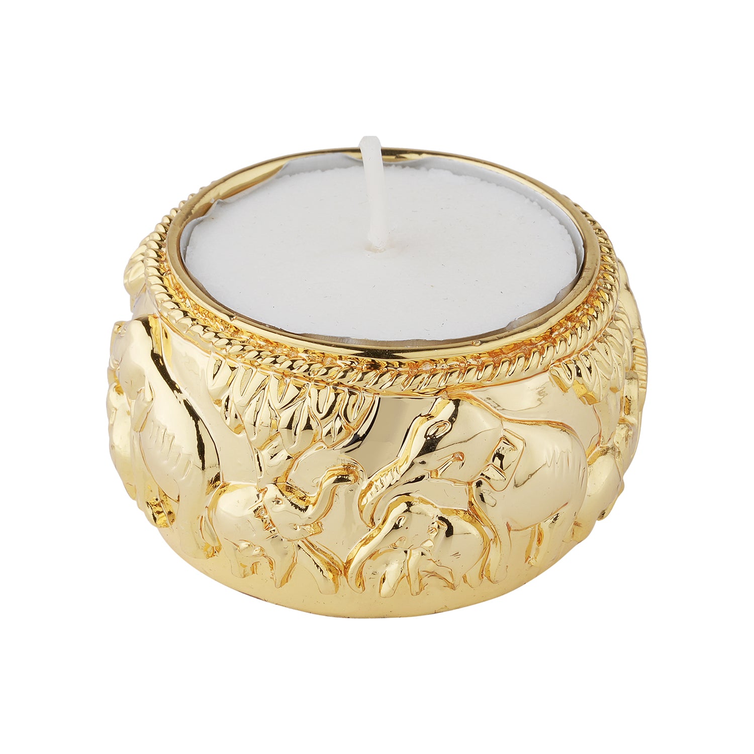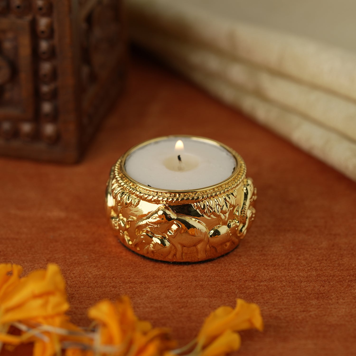 Embrace the festive season with Voylla's stunning tealight holder, meticulously crafted from high-quality material. This elegant showpiece features intricate designs, adorned with vibrant colors to add a touch of brilliance to any celebration. The tealight holder showcases a beautiful Hue of gold, highlighting its detailed craftsmanship and intricate patterns. Ideal for occasions like Diwali, Rakshabandhan, and family gatherings, this tealight holder illuminates your home with warmth and elegance. Perfect for pujas, parties, and gifting, it embodies the spirit of the festive season, making it a wonderful gift for family, friends, sisters, mothers, or colleagues. Enhance your home decor with this exquisite Voylla tealight holder, bringing light and joy to your festive celebrations.