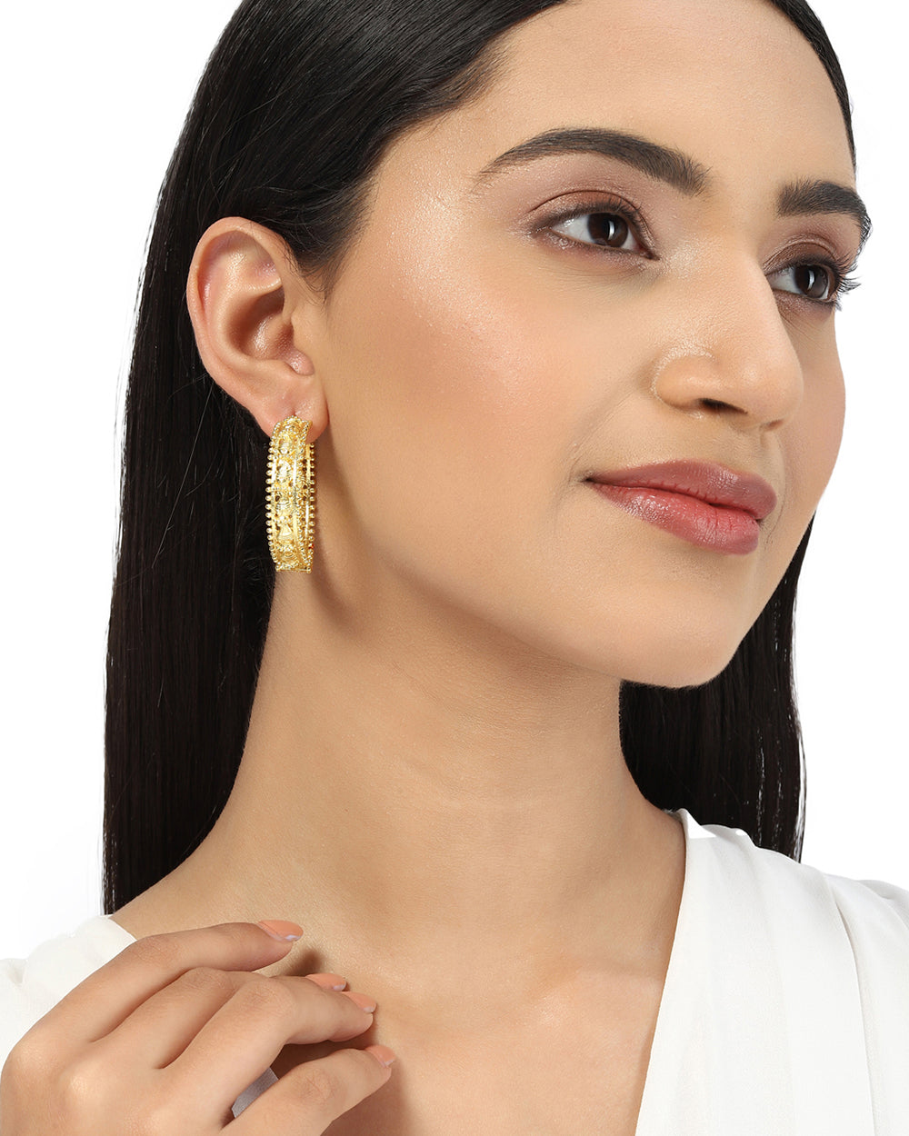 Add something new and stylish to your collection, do check out our new collection of earrings which is designed for fashionistas like you. These alluring piece of brass earrings will suit you up for any event and the gold plate finishing to it will give you an elite look. Book our earrings and flaunt yourself in the crowd.