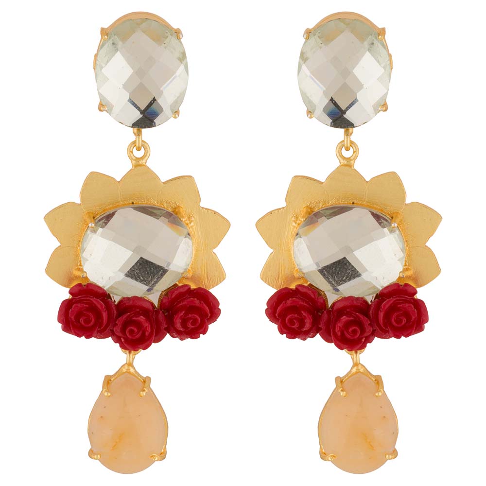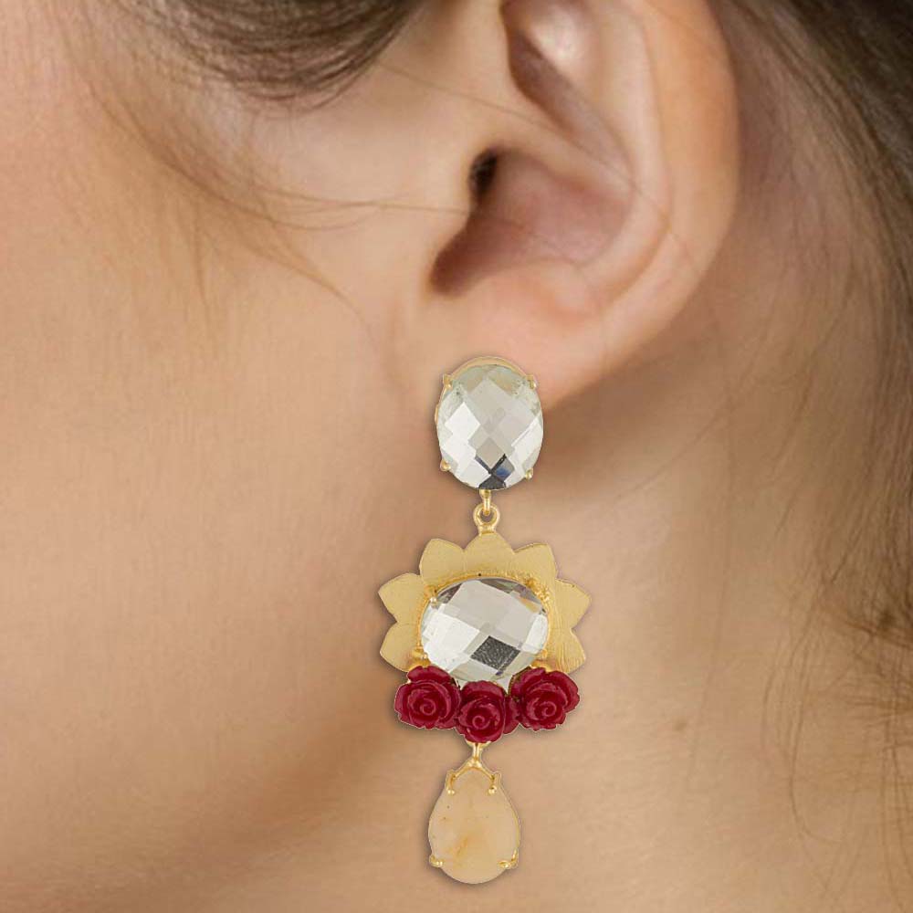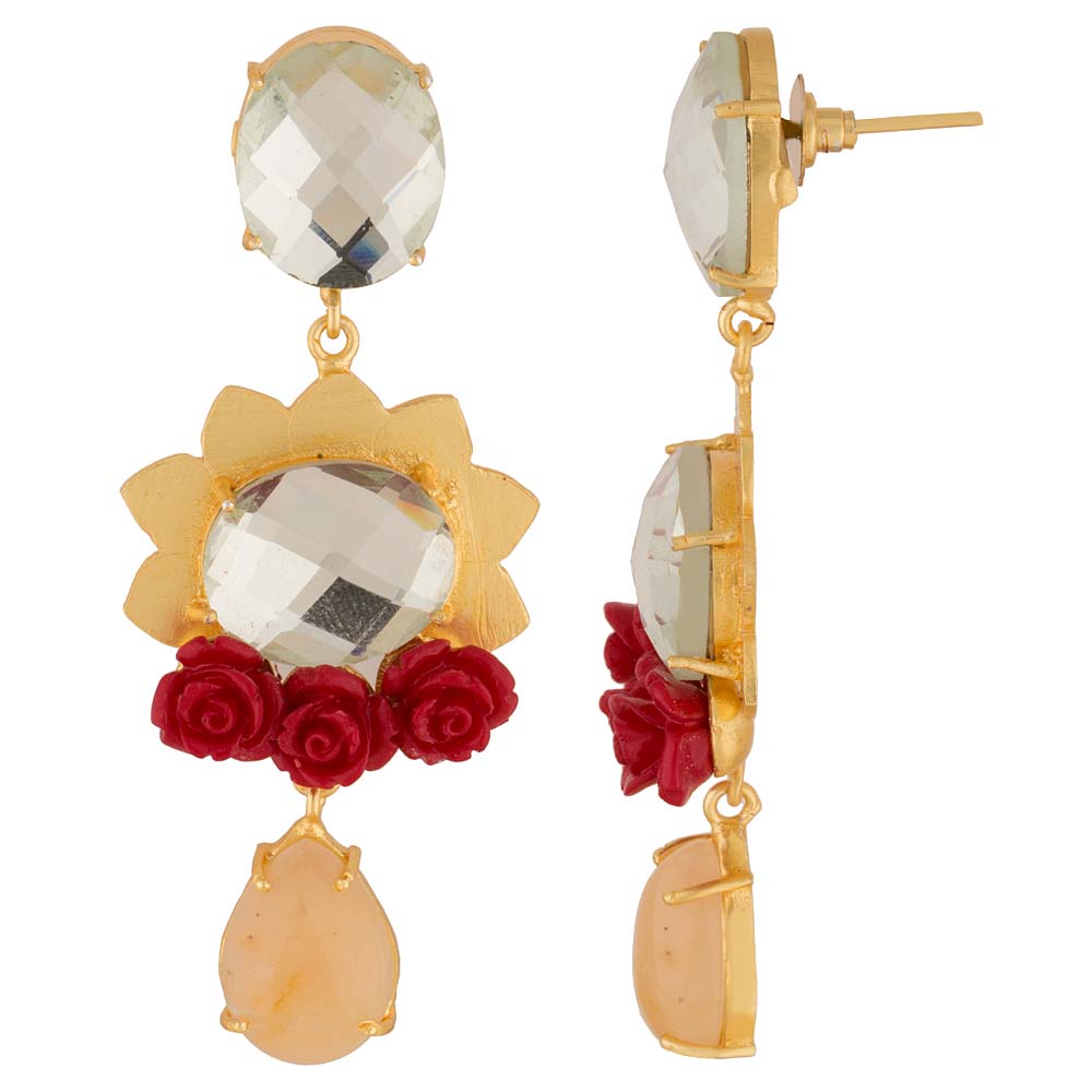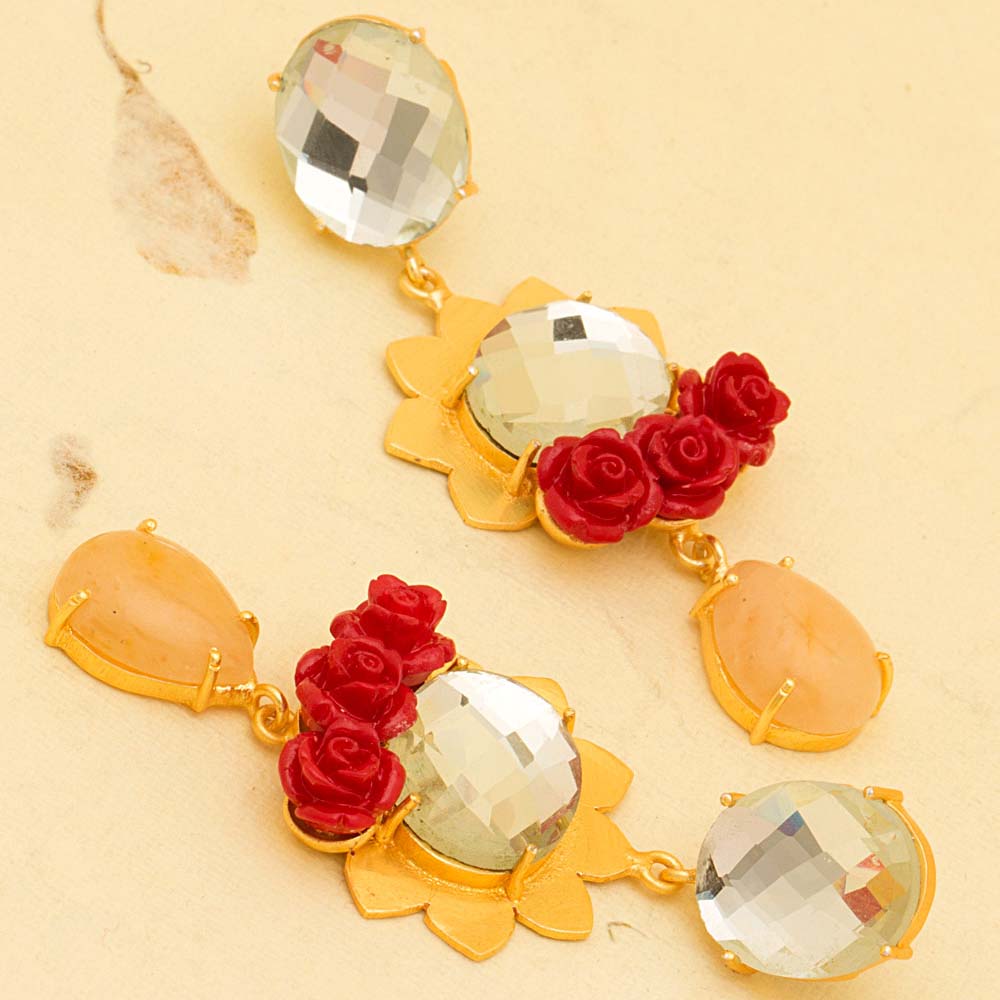 Make a gorgeous statement with this pair of danglers which studded with red rose also which spells a perfect traditional look when worn with special outfits. Get this beautiful jewelry to wear in weddings or colorful occasions.