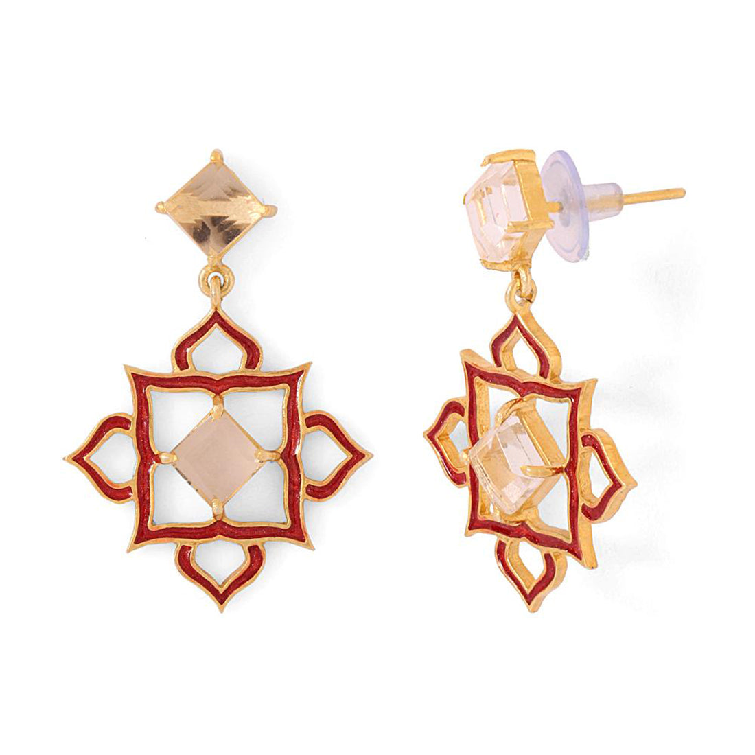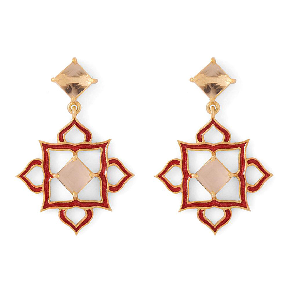 Flaunt your unique taste in ardent jewelry with these lovely earrings. These danglers are adorned with delicate red enamel work and sparkling crystal. Grab these right away!