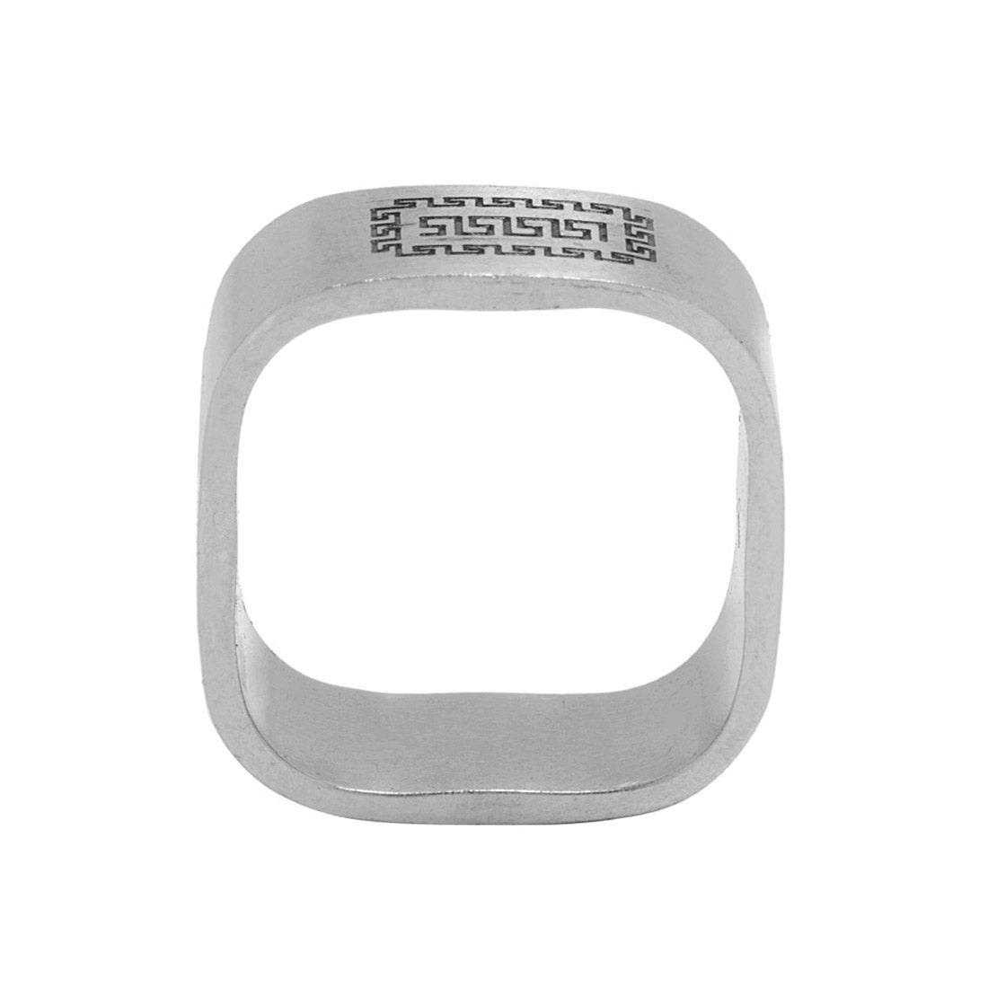 Add this alluring ring to your collection to be a fashion forward. Made with transcendent metal alloy, this superior ring features black engraving and sheeny silver-tone. Grab this perfect steal of the season today.