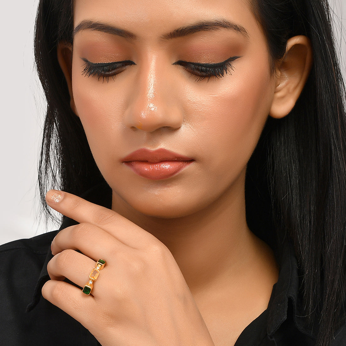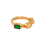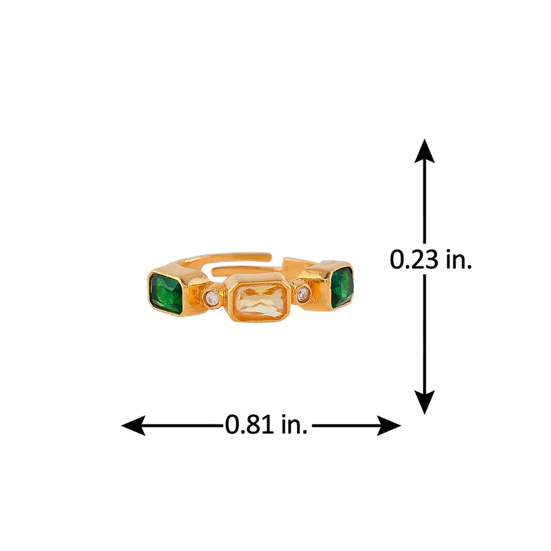 Make your mother feel special with this beautiful emerald shaped CZ half band ring from our Mother's Day Collection. Crafted with brass and plated with yellow gold, this ring features a stunning combination of green and yellow CZ stones that will add a touch of elegance to any outfit. The half band design adds a unique touch to the ring, making it perfect for everyday wear or special occasions.