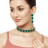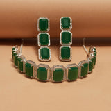 Emerald Cut Zircons Adorned White Toned Choker Jewellery Set
