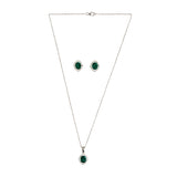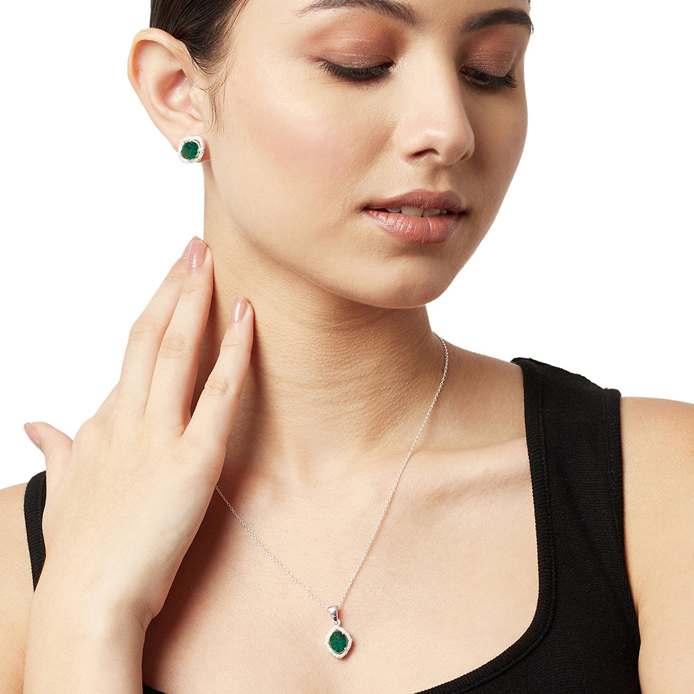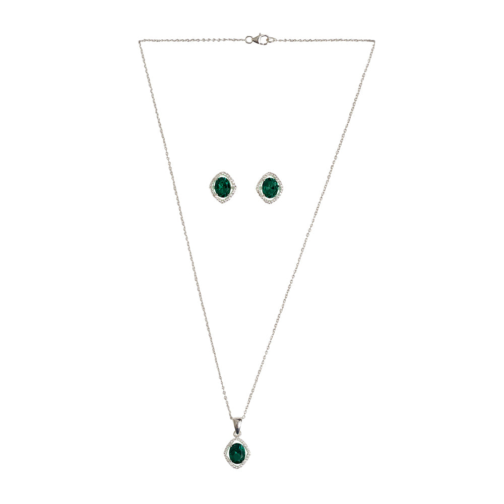 Emerald Floating Stone 925 Sterling Silver Pendant Set