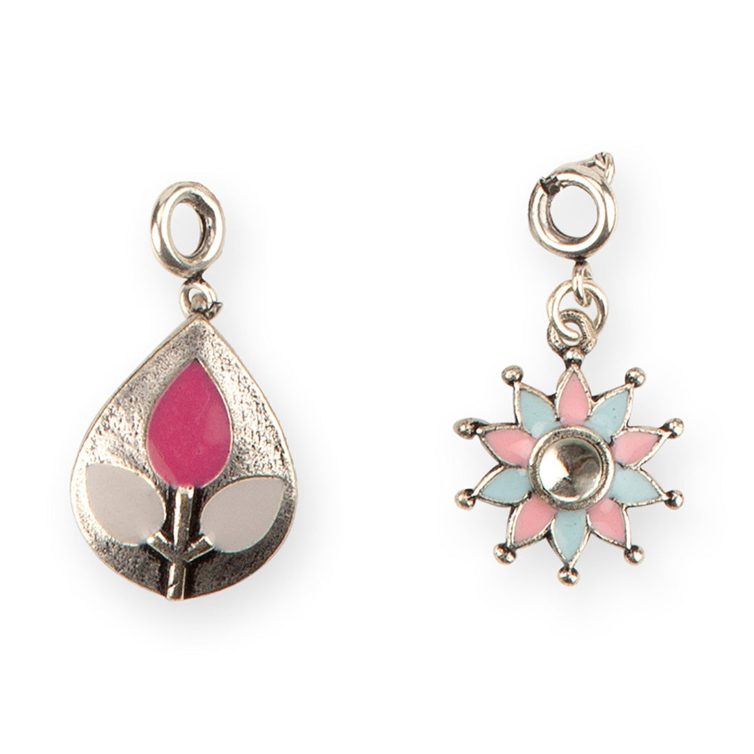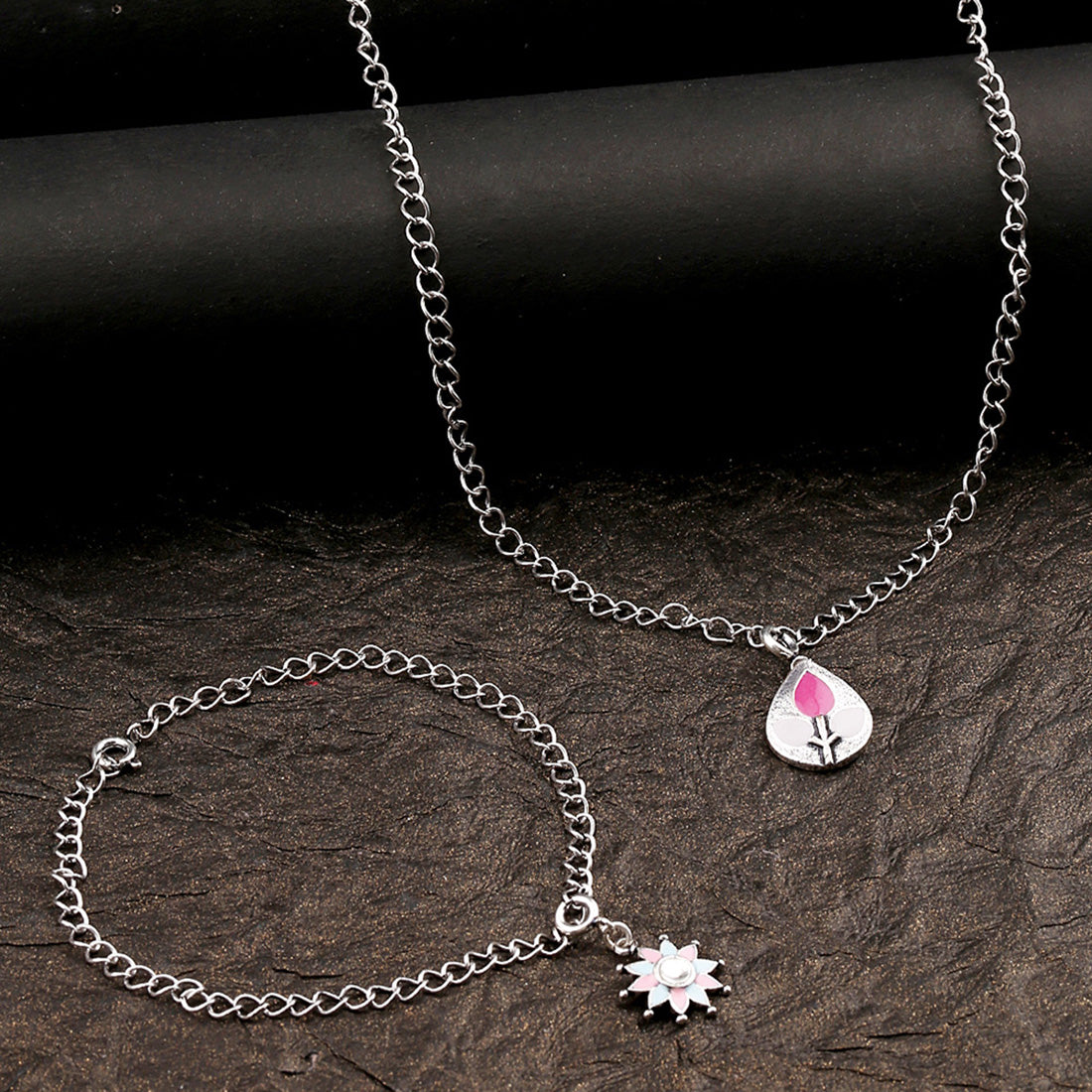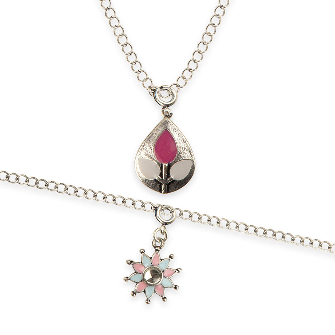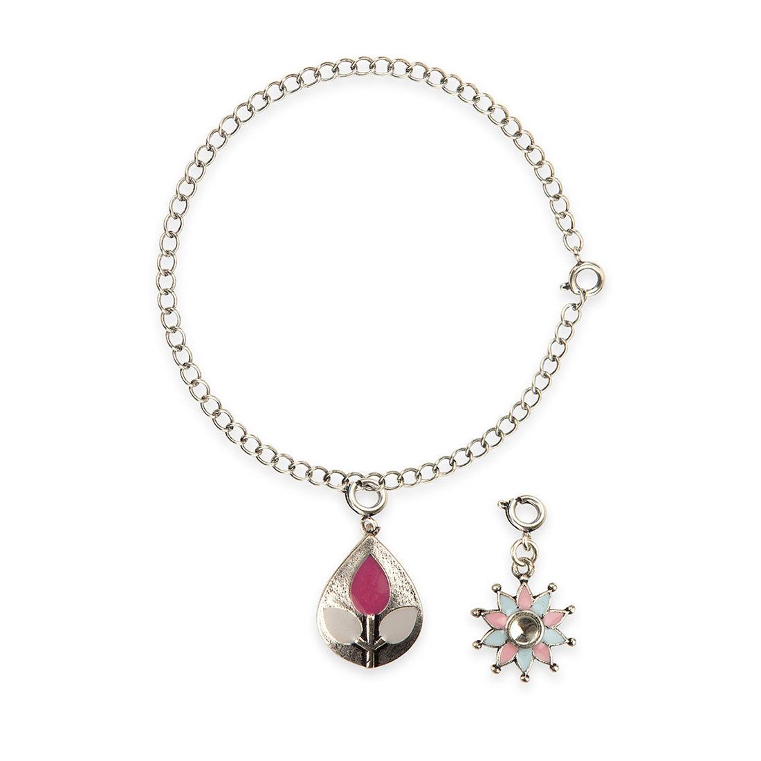 Enameled Teardrop And Floral Charms Pendant with Bracelet
