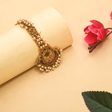 Gold plated maang tika, fashioned from brass into a classic, ethnic design. Embellished with faux pearls, the tika features delicate floral motifs and is lightweight and comfortable. Pair with formal Indian outfits.
