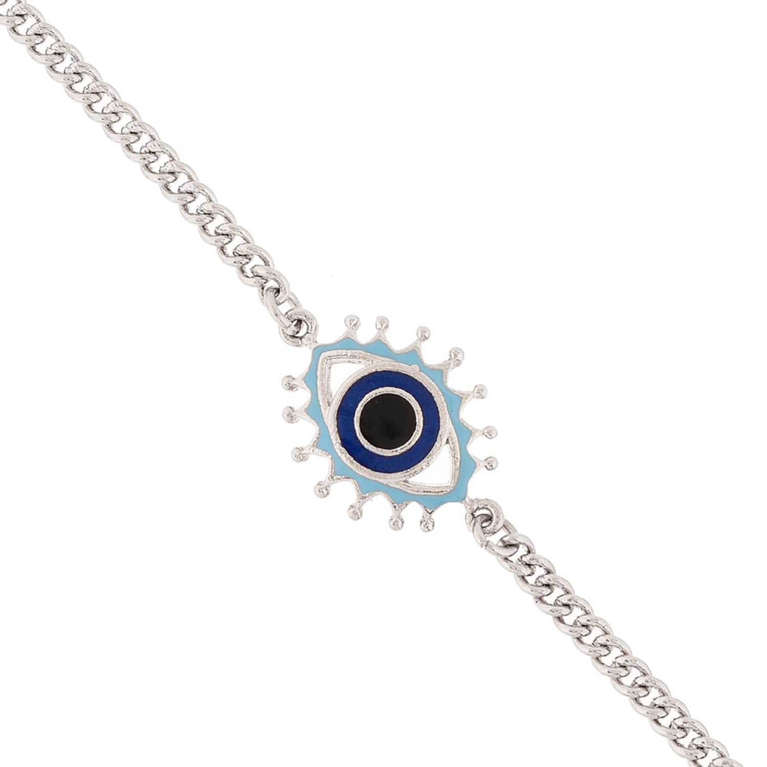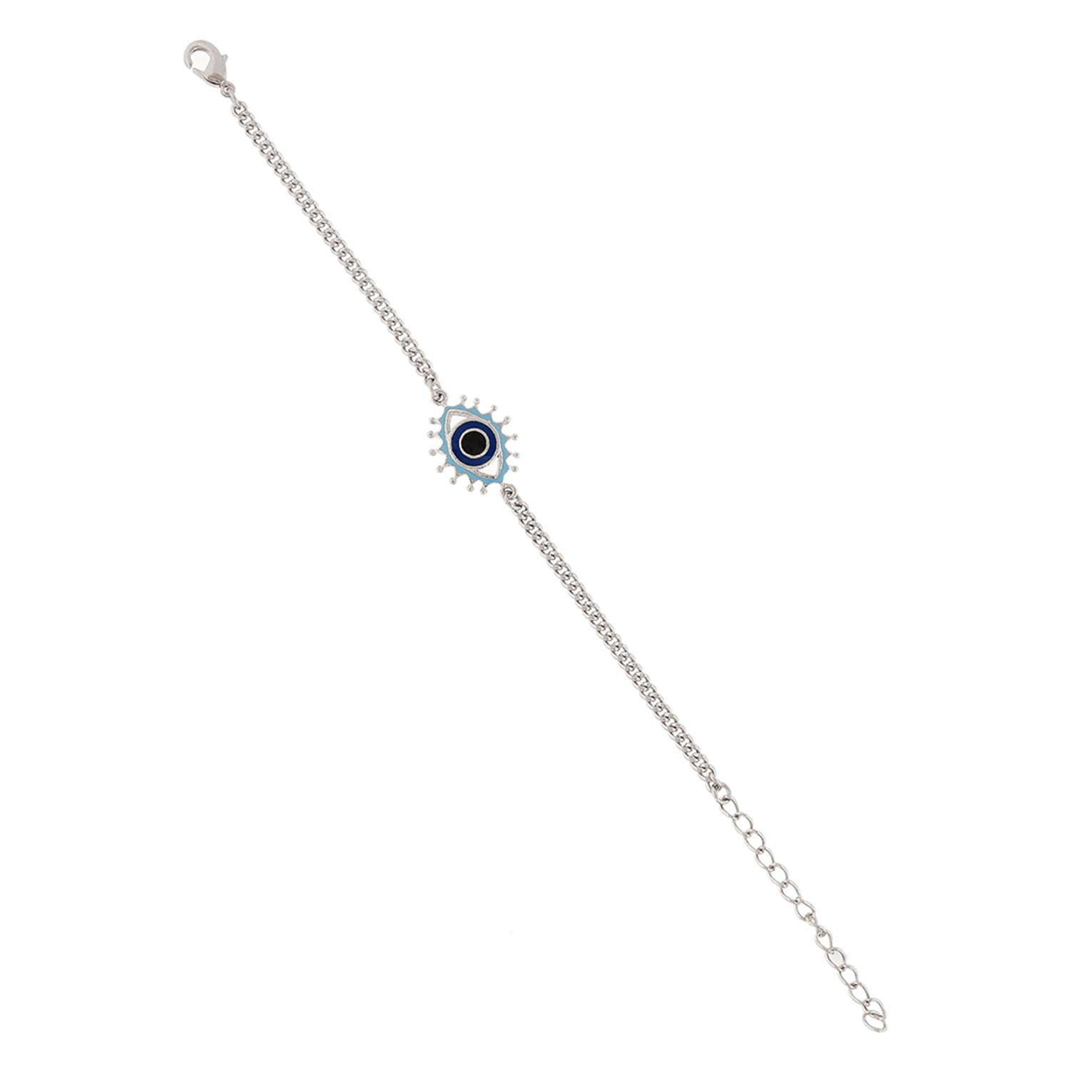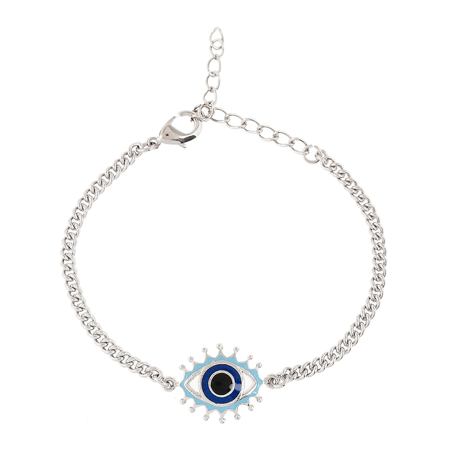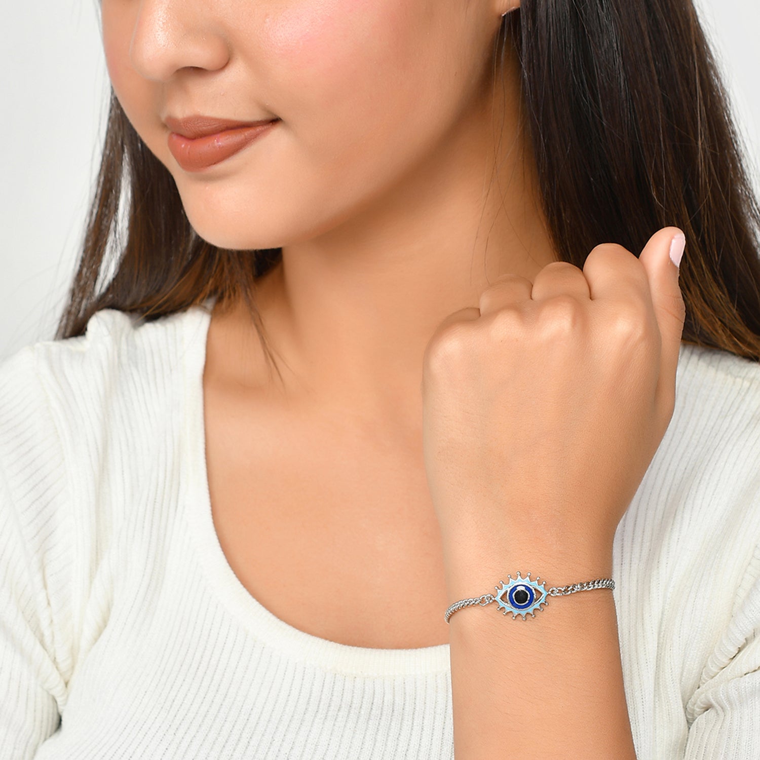 Evil Eye Motif With Silver Oxidized Chain Bracelet