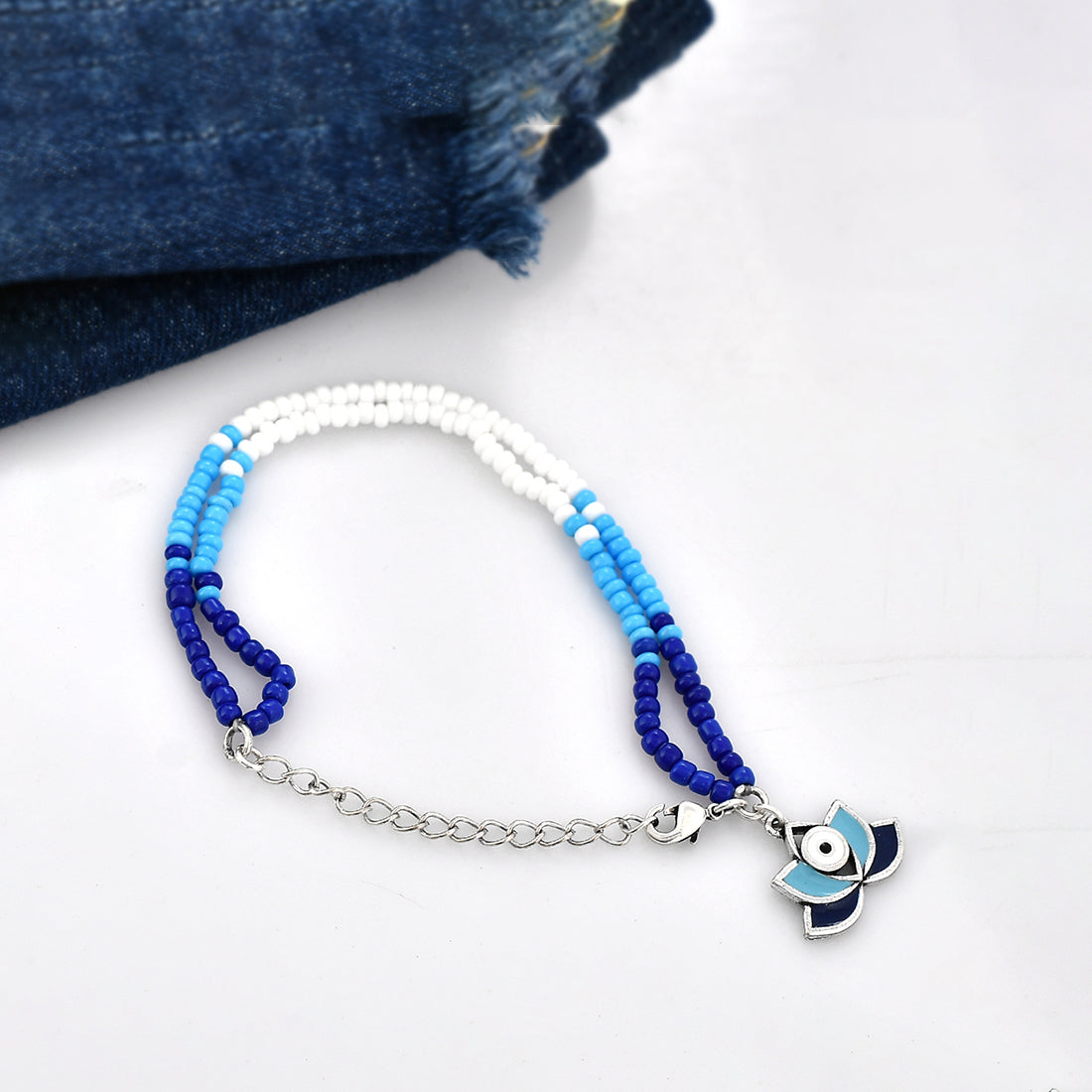 Evil Eye Blue And White Beads Silver Oxidized Chain Bracelet