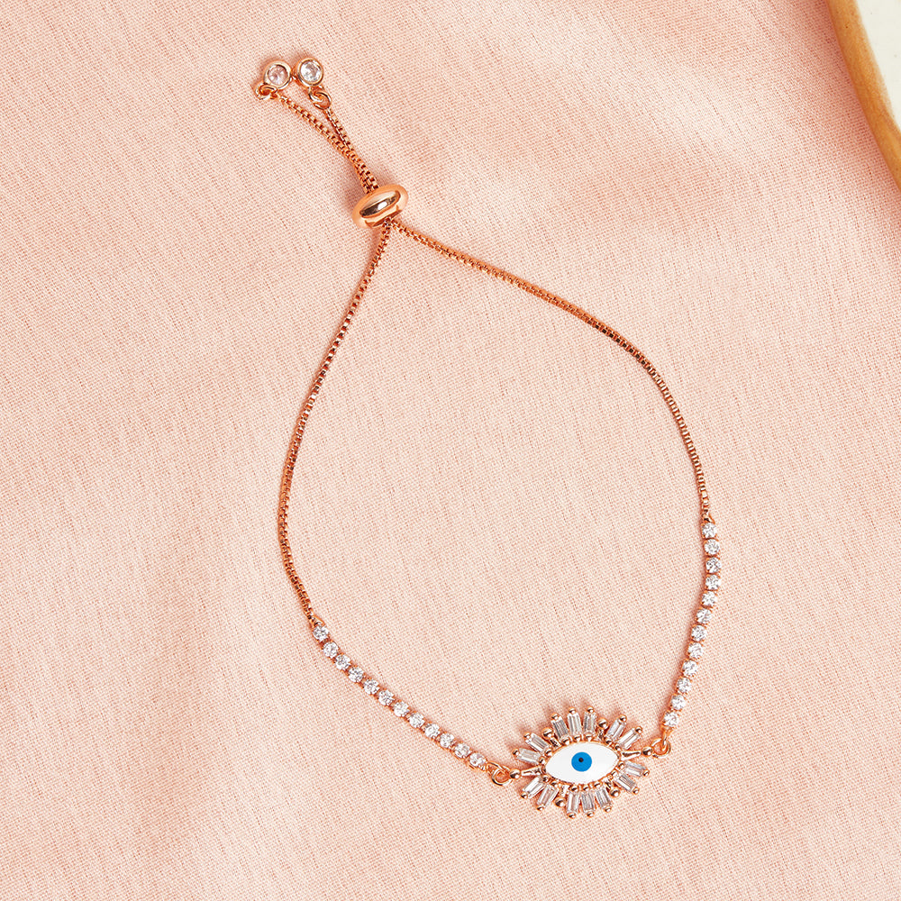 Evil Eye Charm Rose Gold Plated Chain Bracelet