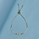 Evil Eye Round Cut CZ Adorned Brass Gold Plated Chain Bracelet