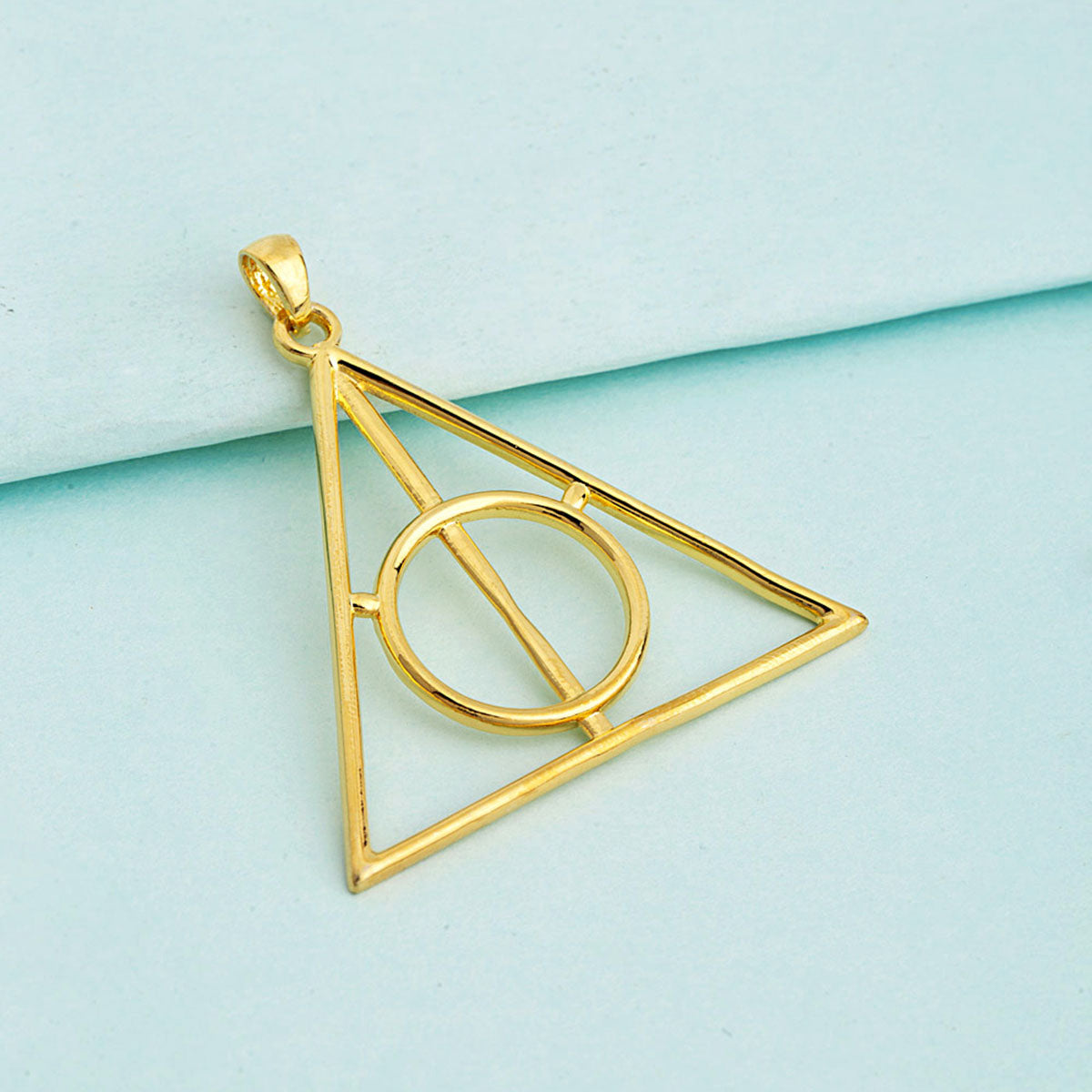 Masonic style Deathly Hallows pendant made from brass and yellow gold plated. Wear with a gold rope chain. To make your accessories last longer avoid harsh chemicals and moisture. Keep dry, clean with dry cloth and wear with panache. "India’s largest fashion jewelry brand DARE, comes from the House of Voylla as a limited edition of handcrafted accessories for the modern Indian men. "