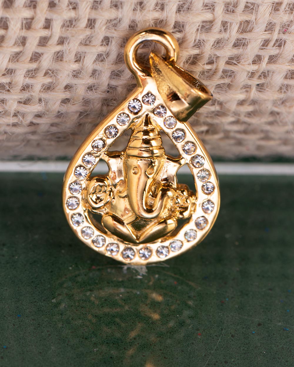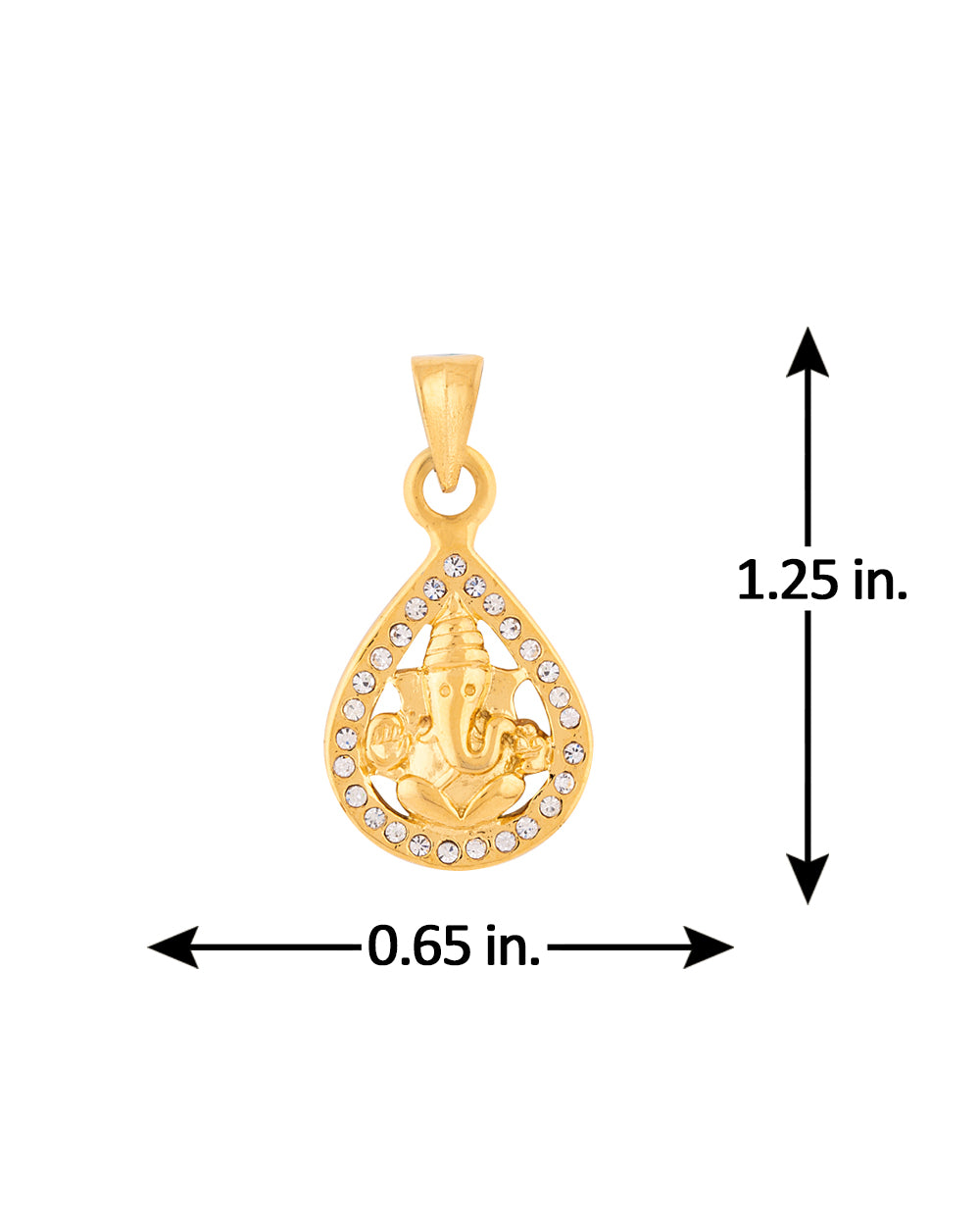 Gem studded Lord Ganesha pendant, made from stainless steel. Yellow gold plated, lightweight and can be worn with gold and silver chains. To make your accessories last longer avoid harsh chemicals and moisture. Keep dry, clean with dry cloth and wear with panache. "From the Dare by Voylla, India’s largest fashion jewelry brand comes DARE, a line of handcrafted accessories for the modern Indian man. "