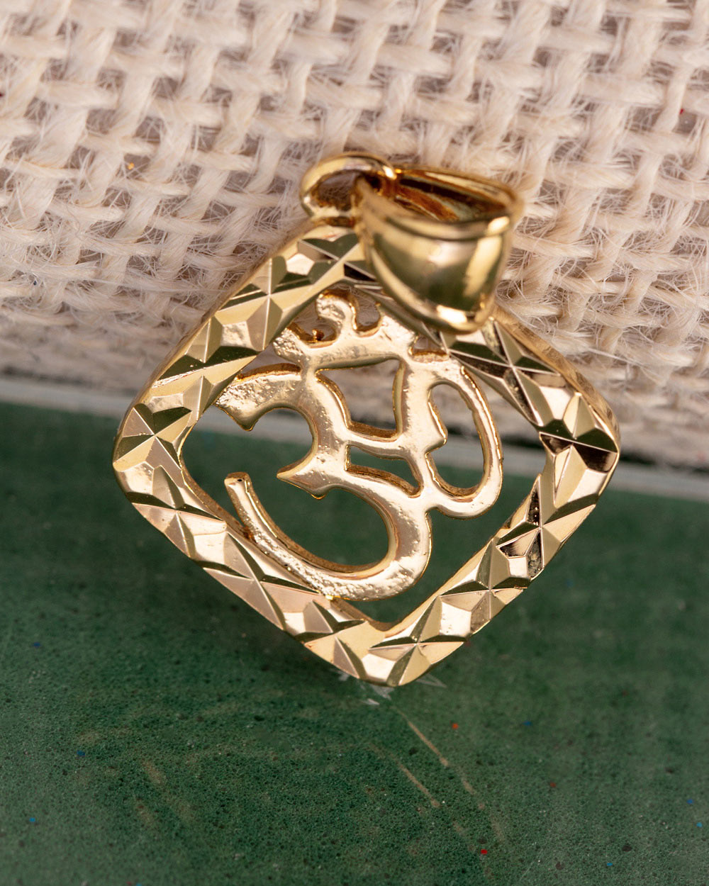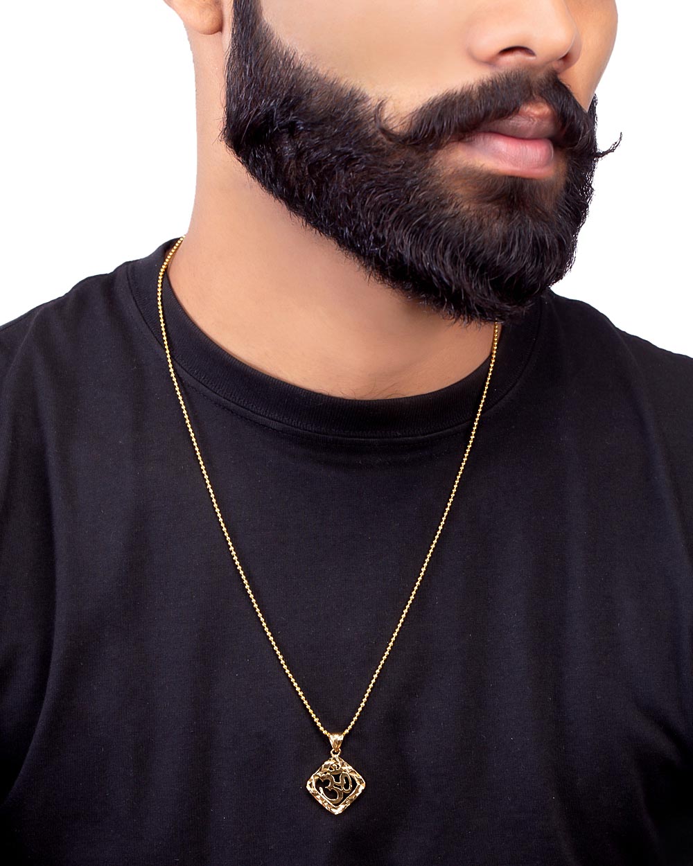 OM pendant made from stainless steel. Features a textured surface and yellow gold plating. Wear with a gold or silver chain. To make your accessories last longer avoid harsh chemicals and moisture. Keep dry, clean with dry cloth and wear with panache. "From the Dare by Voylla, India’s largest fashion jewelry brand comes DARE, a line of handcrafted accessories for the modern Indian man. "