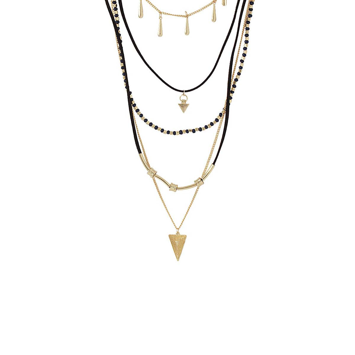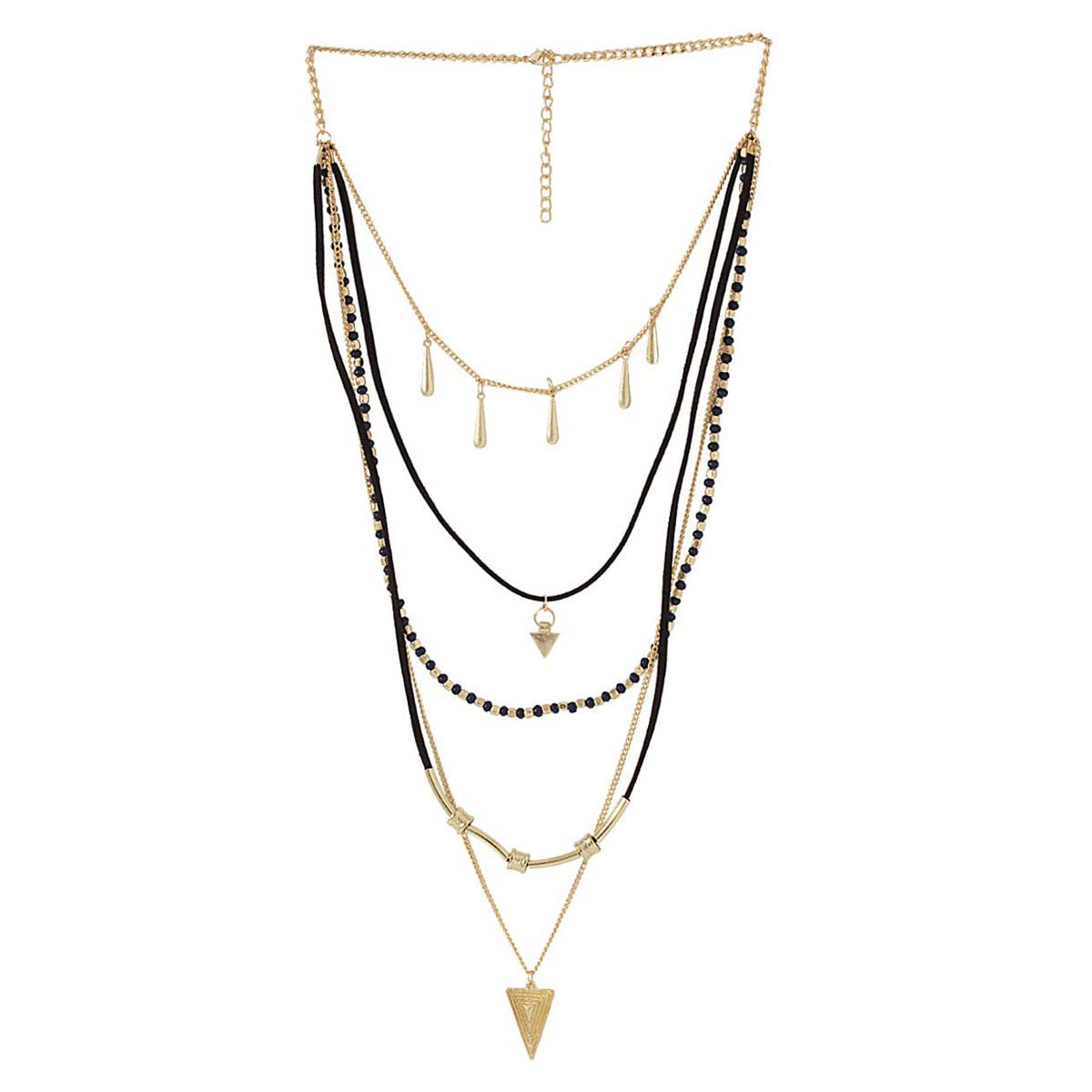 Fascinating Multi-Layered Necklace Adorned With Black And Golden Beads