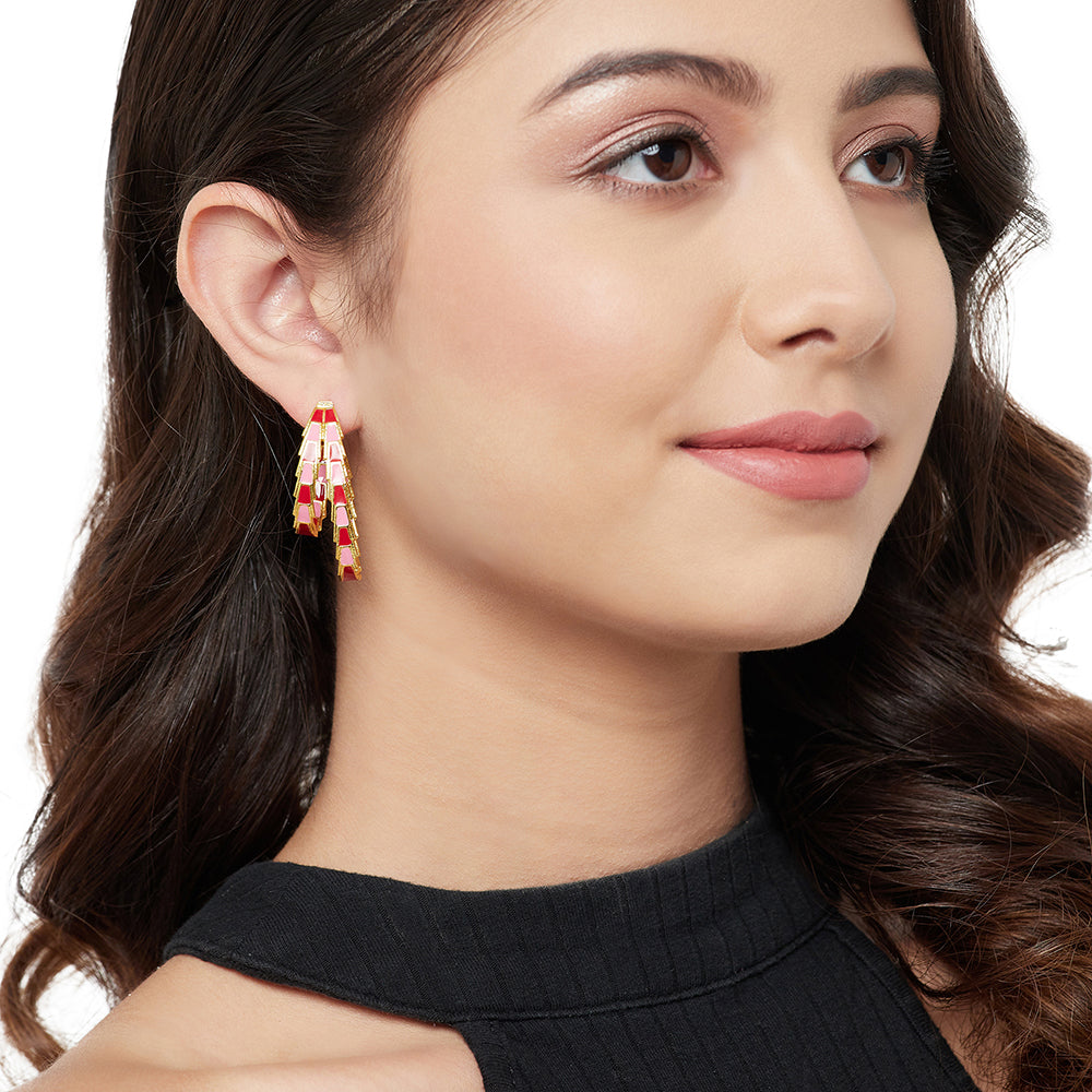 This unique design and combination of maroon and pink gold plated earrings goes along with your any variation of pink and maroon supporting the colour code and outshining the elegance of your dress.