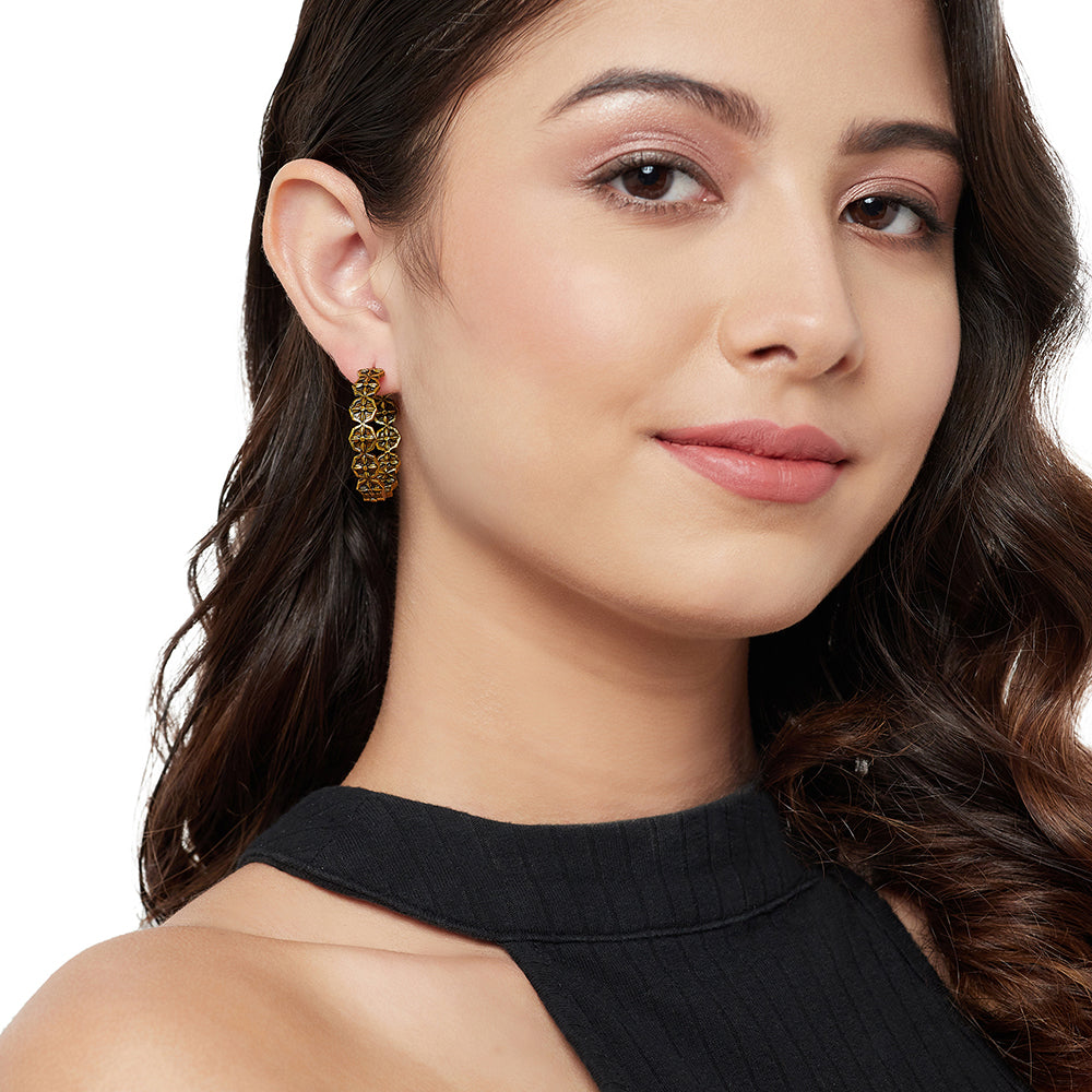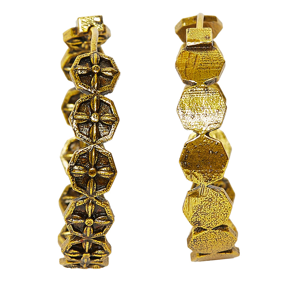 WoW! is what we can call this bohemian style hooper earrings. Based in brass with gold plated look, one is always prepared with its outdoor wear look. That's our take on it.