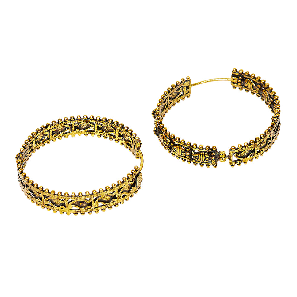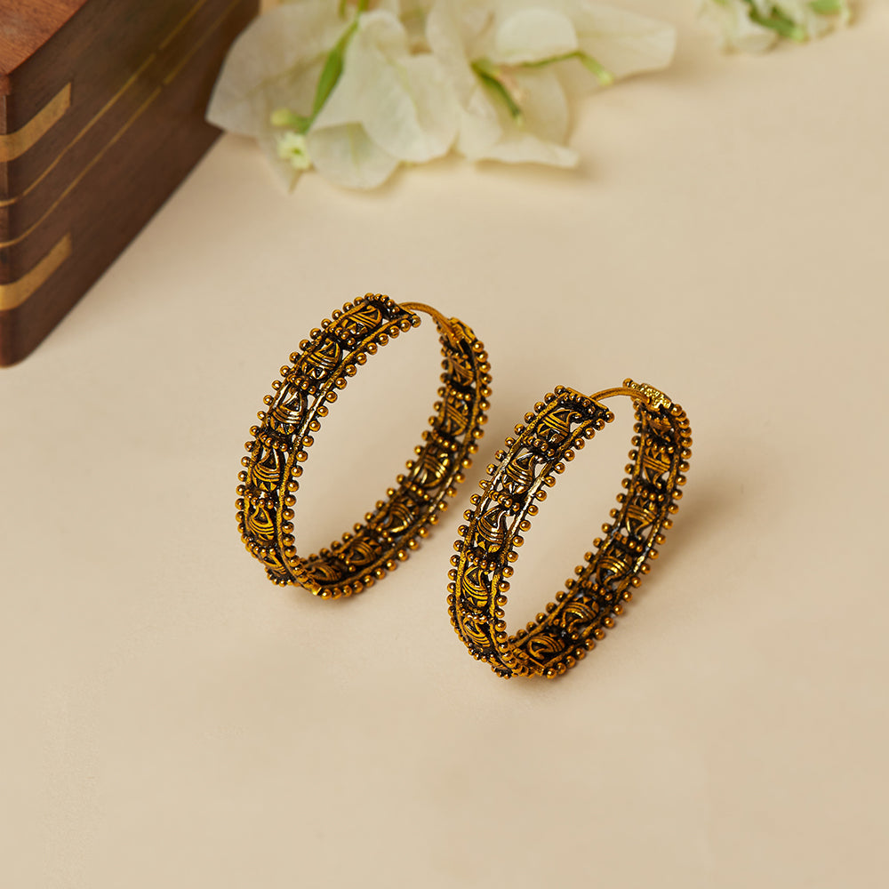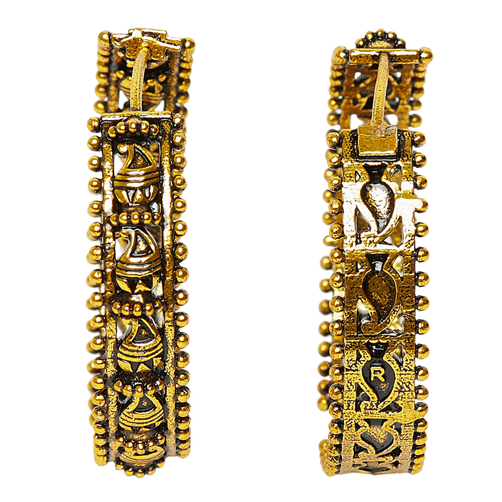 The Kanchivaram style earrings can go well for your traditional look. You can always mix and match with variations of colour and change your style as per occasion. Can wear it well with saree.