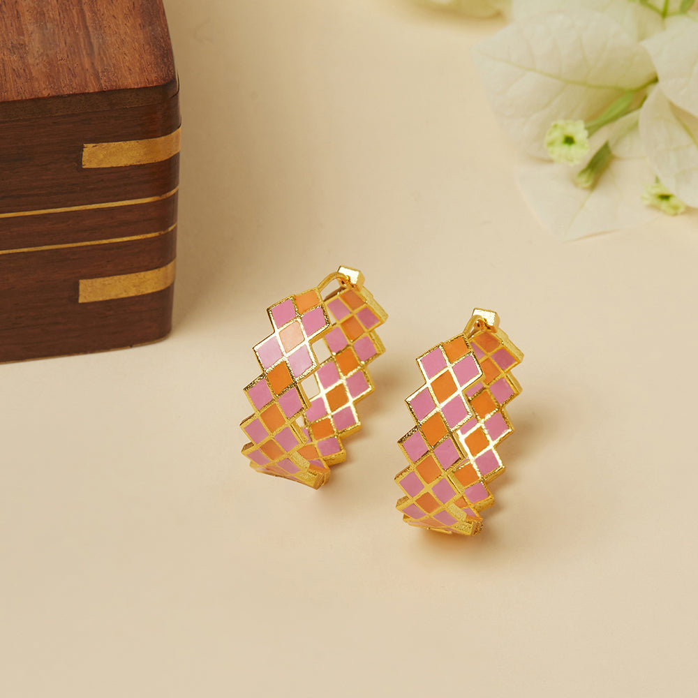 These gold-plated brass studs in red and pink colour will add colour to your look and give a presence of freshness in your outlook. You can compliment it with your office dress and casual outfit.
