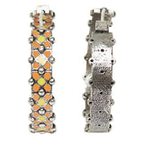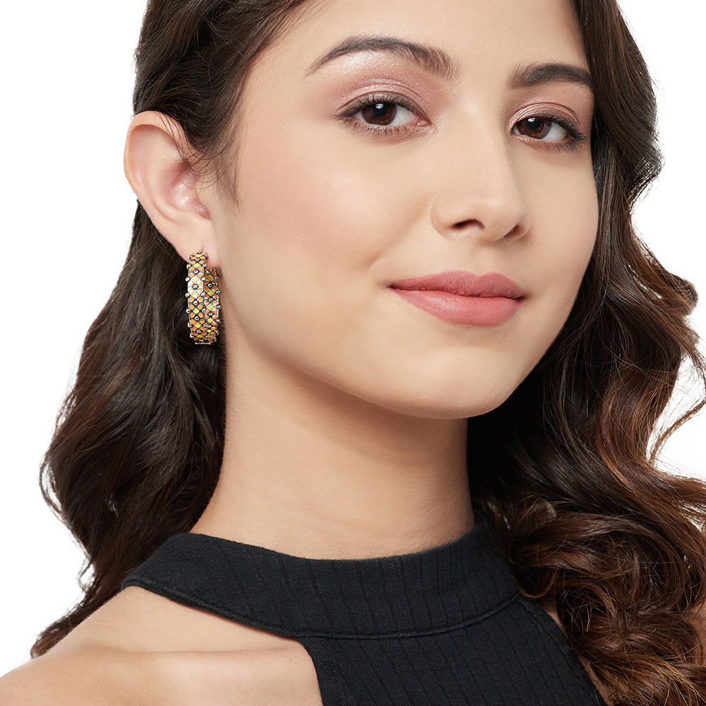 These heart shaped pink and green hued earrings give a lot more space to explore in your wardrobe variety. Carry your heart in your ear and make the world mesmerized by your being.