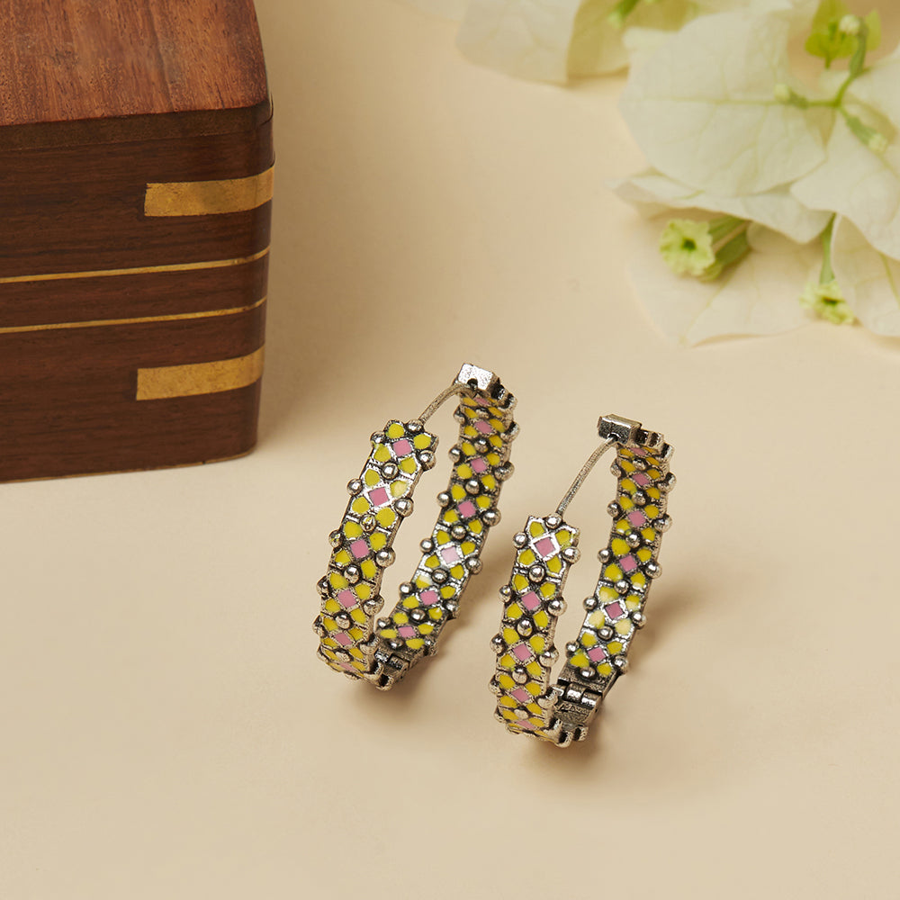 These gold-plated brass studs in red and pink colour will add colour to your look and give a presence of freshness in your outlook. You can compliment it with your office dress and casual outfit.