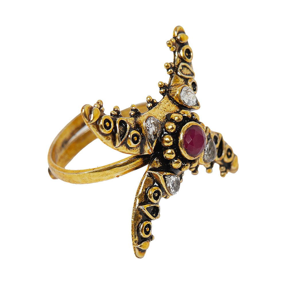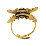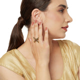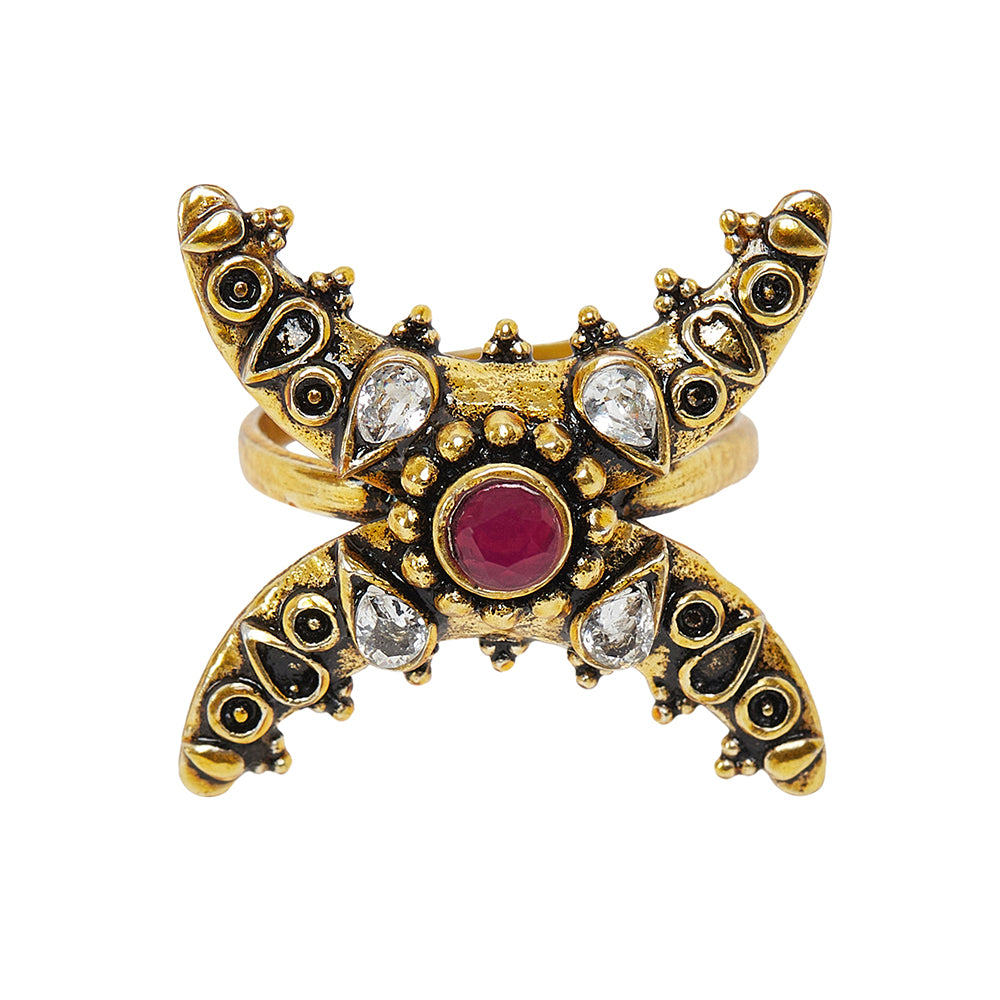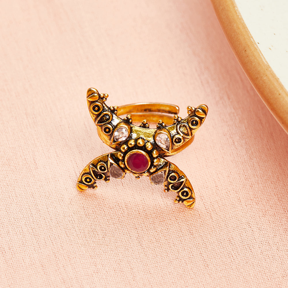 Faux Kundan Adorned Yellow Gold Plated Tribal Inspired Brass Ring