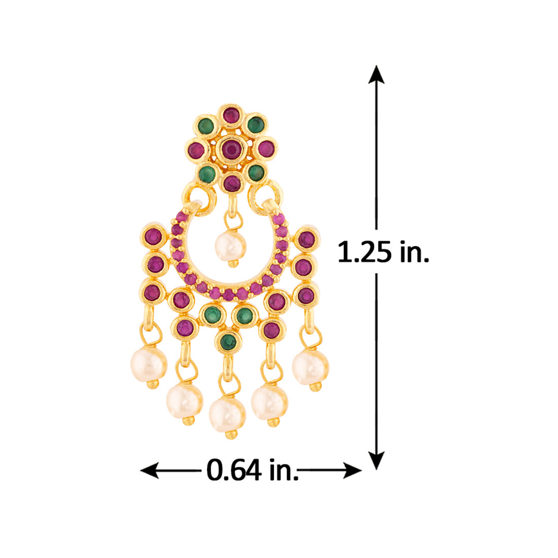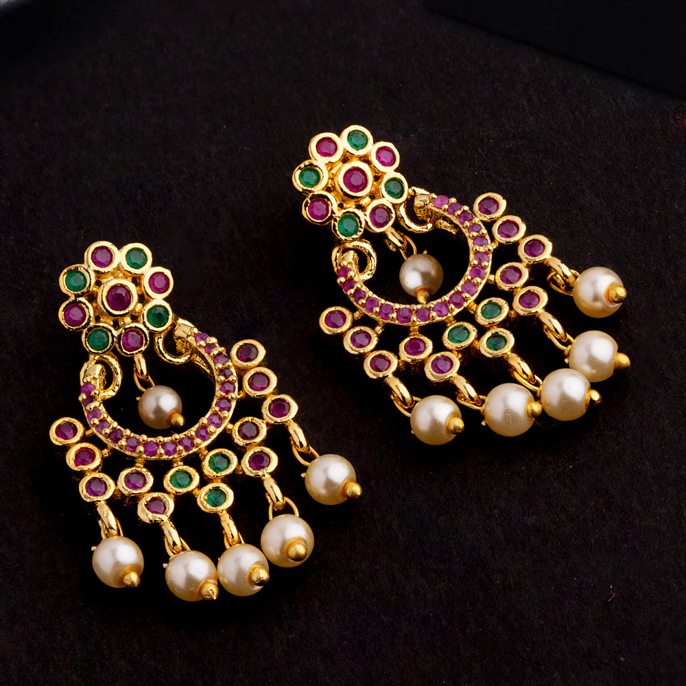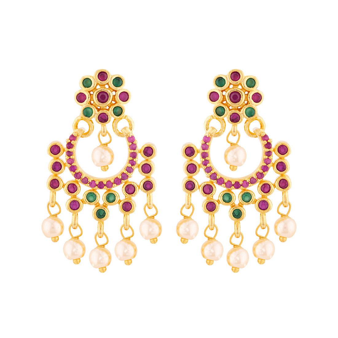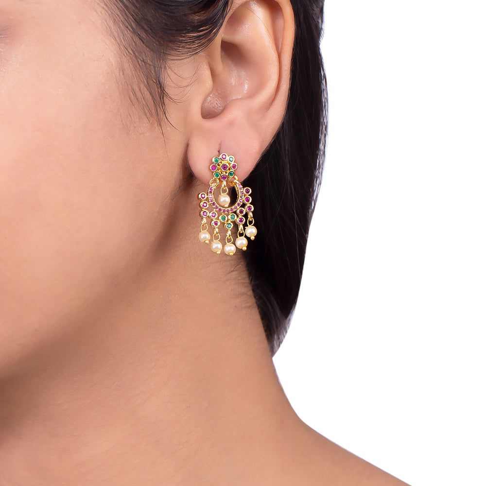 Faux pearls and zircon gems embellished earrings featuring tassels. Made from brass and yellow gold plated. Wear with a traditional sare.