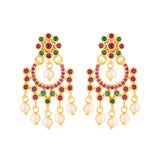 Faux Pearls and American Diamond Gems Tassels Earrings