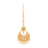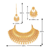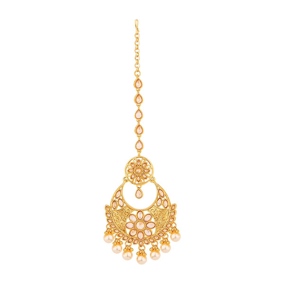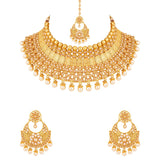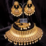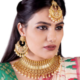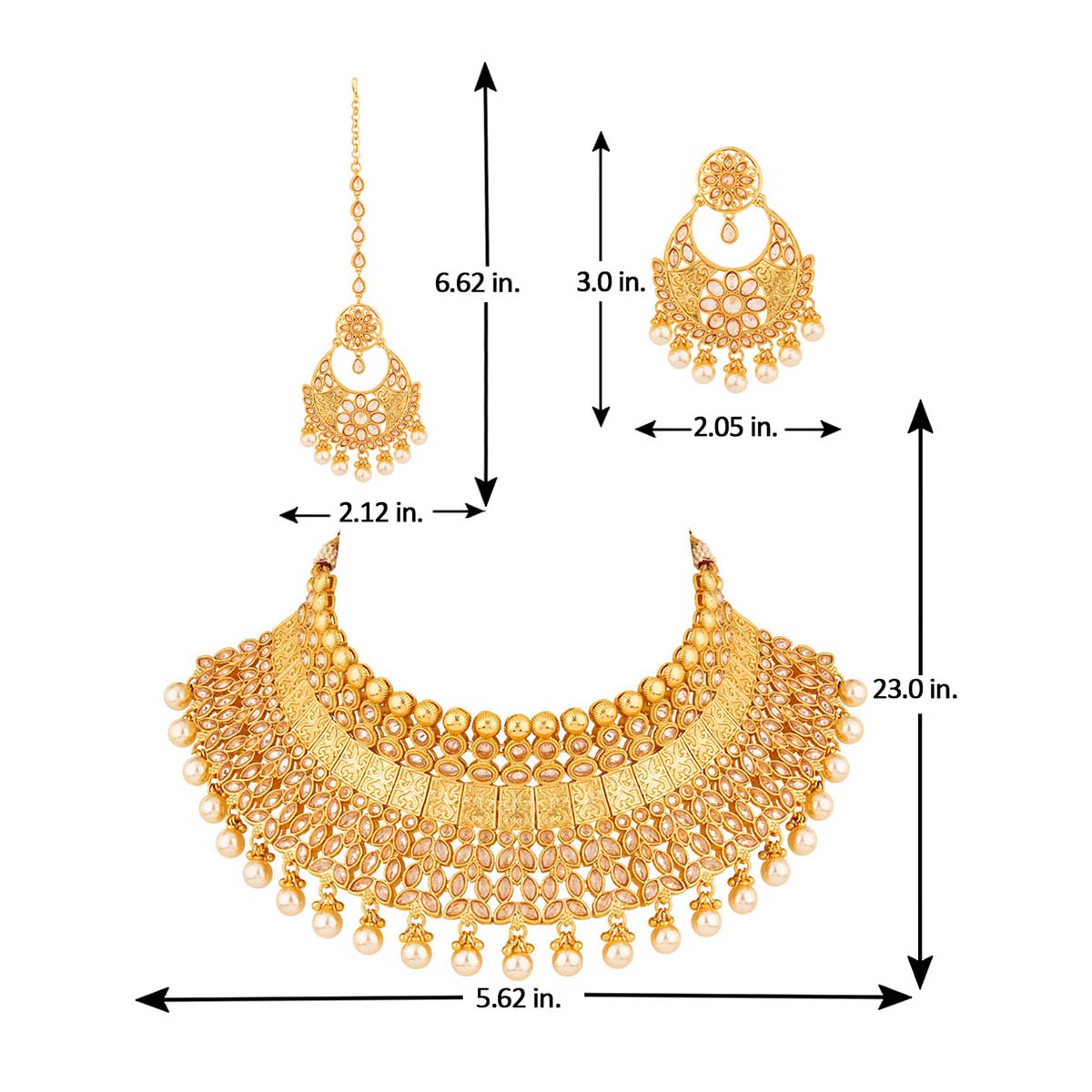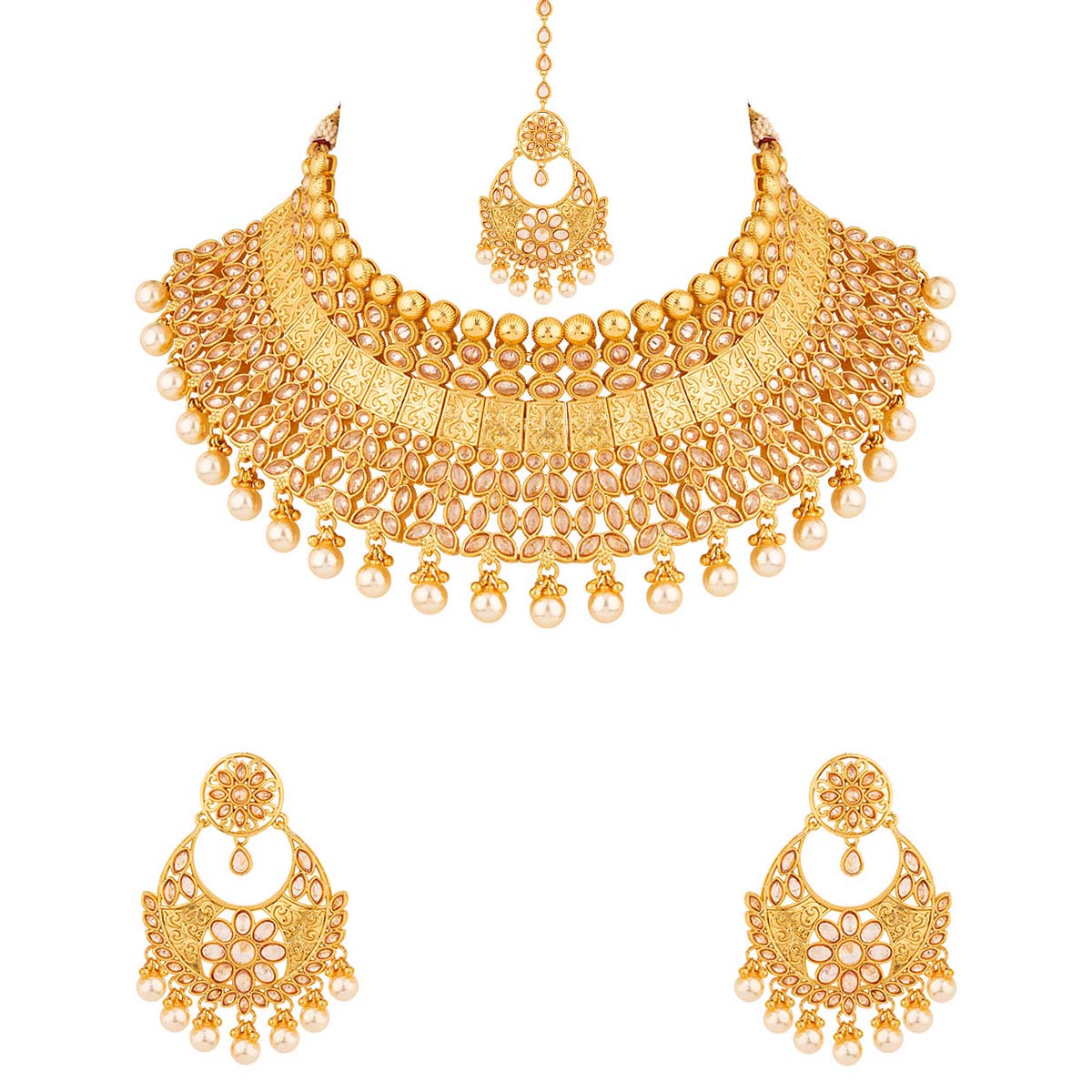 Choker necklace set made from brass and yellow gold plated. Embellished with faux pearls. Good for formal ethnic looks.