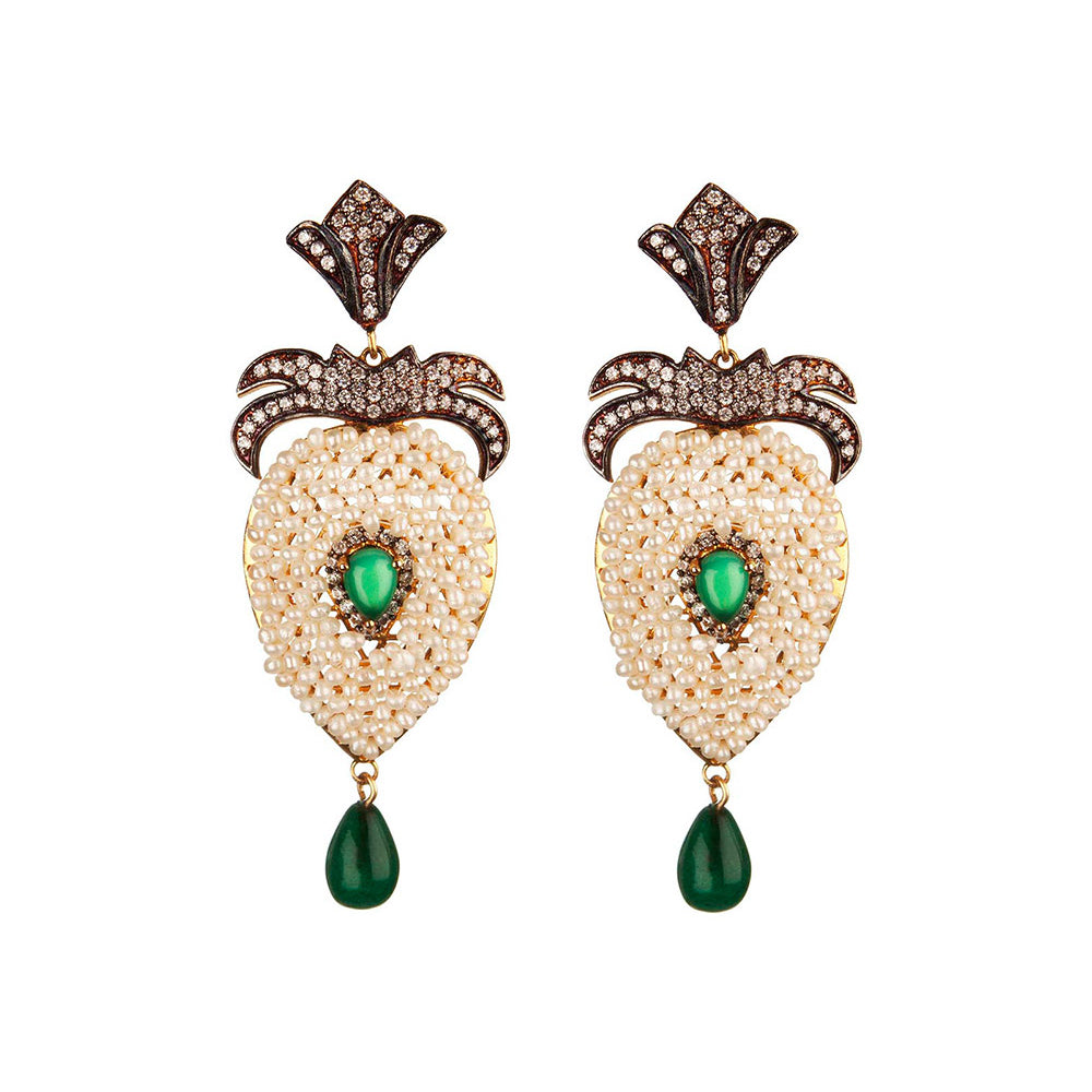 Elegant and opulent; these glistening cubic zirconia gold plated earrings embellished with beads and semi-precious stones are perfect for special occasions.