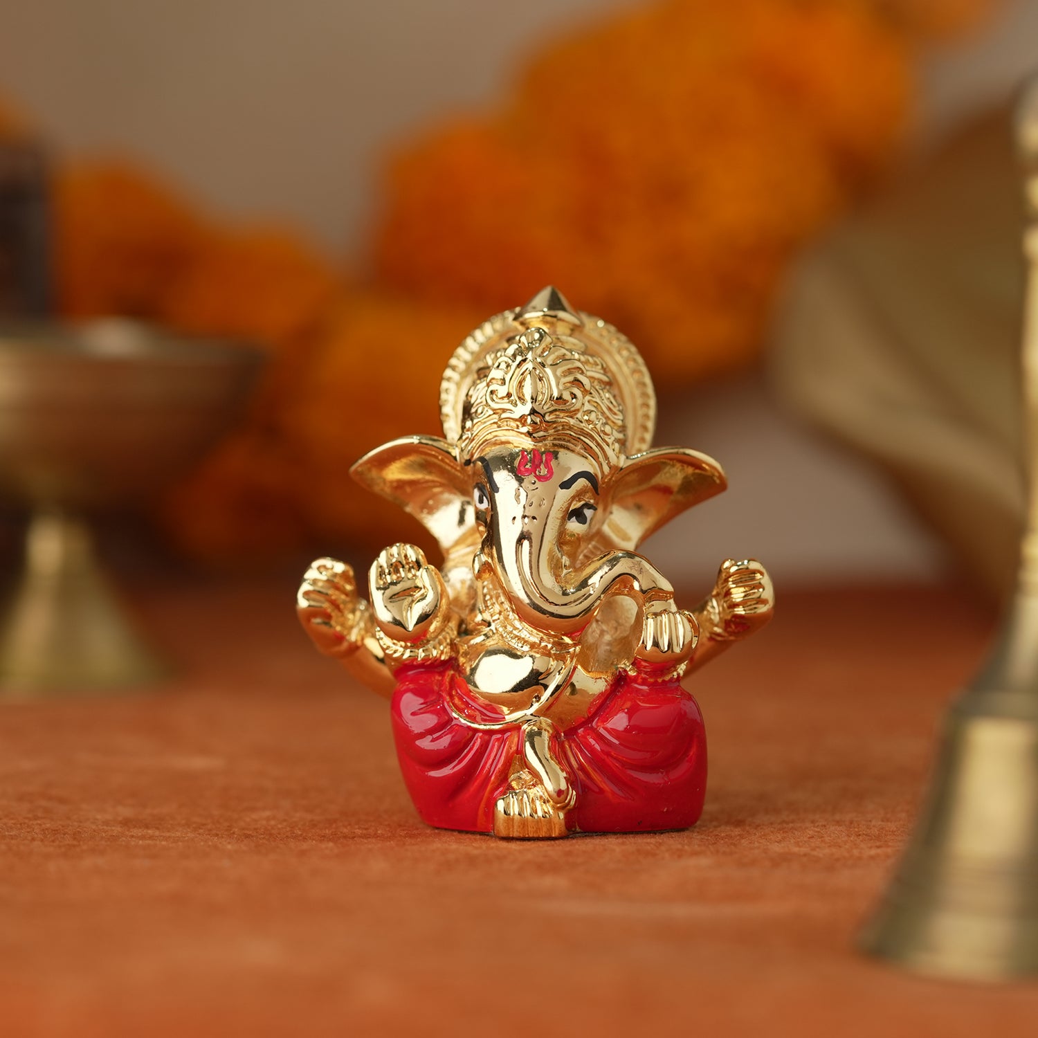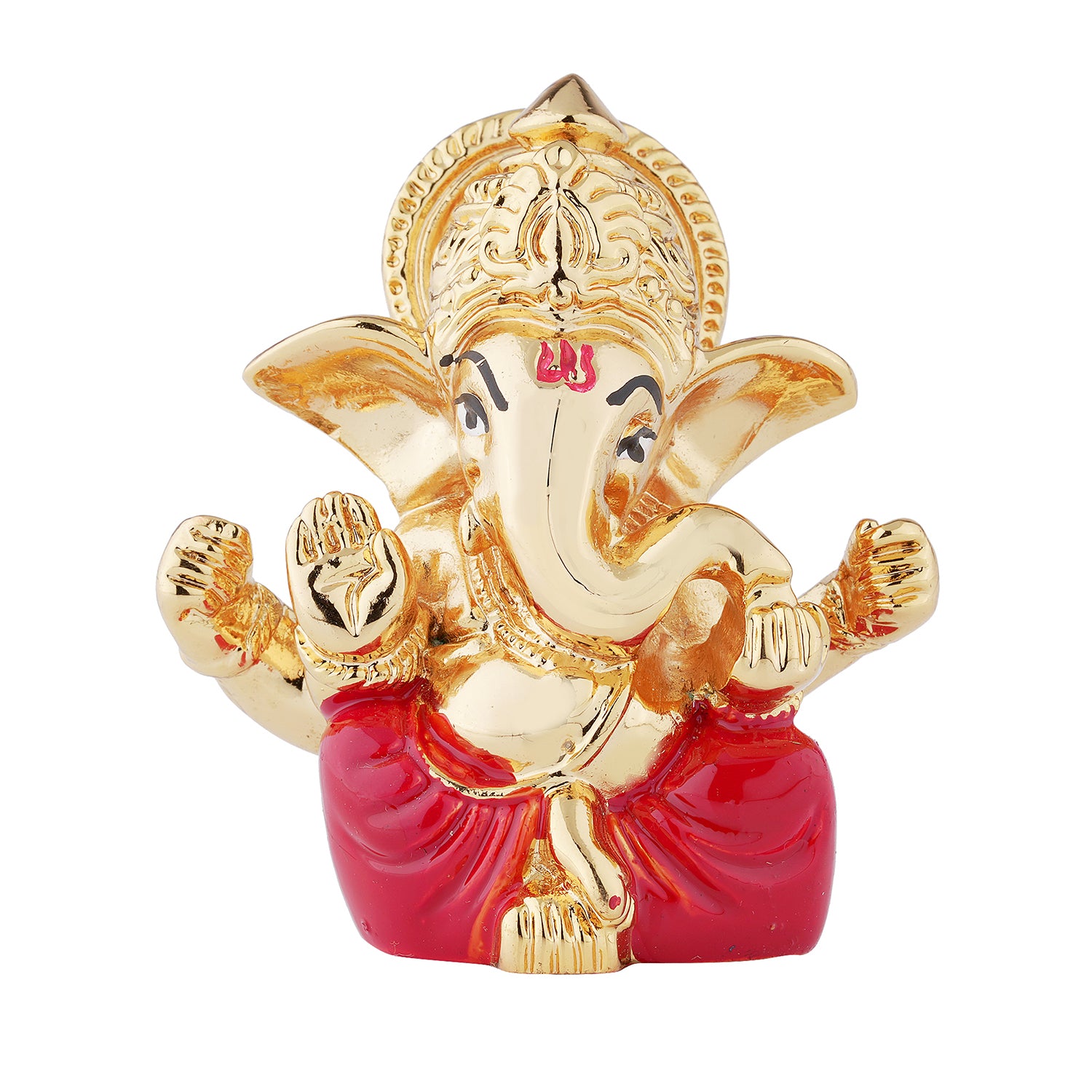 Voylla presents a stunning Lord Ganesha idol, crafted from premium resin material. This divine showpiece features intricate detailing and vibrant colors, capturing the essence of Lord Ganesha with a blend of gold and ivory hues. The idol showcases Ganesha seated gracefully with an intricately adorned headdress, jewelry, and a serene expression that embodies wisdom and prosperity. Perfect for Diwali, Rakshabandhan, and other festive occasions, these idols add a touch of elegance and spirituality to your home decor. Ideal for pujas, parties, and gifting, they are perfect for family, friends, sisters, mothers, or colleagues. Celebrate the festive season with these beautiful Voylla Lord Ganesha idols, bringing blessings and joy to your loved ones.