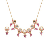 Festive Hues Floral Mirror Work Brass Gold Plated Jewellery Set