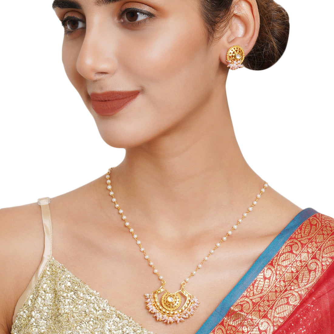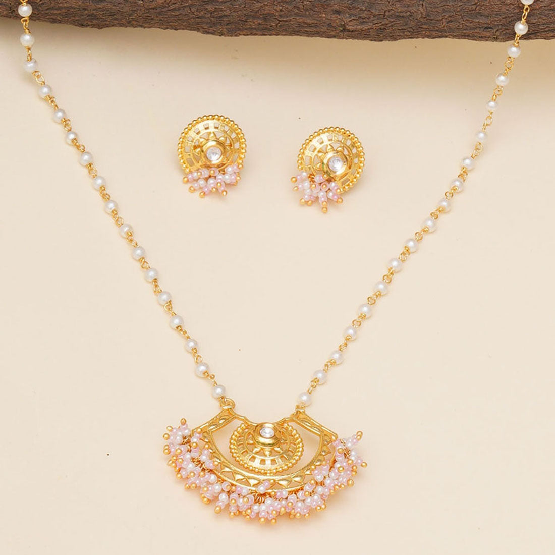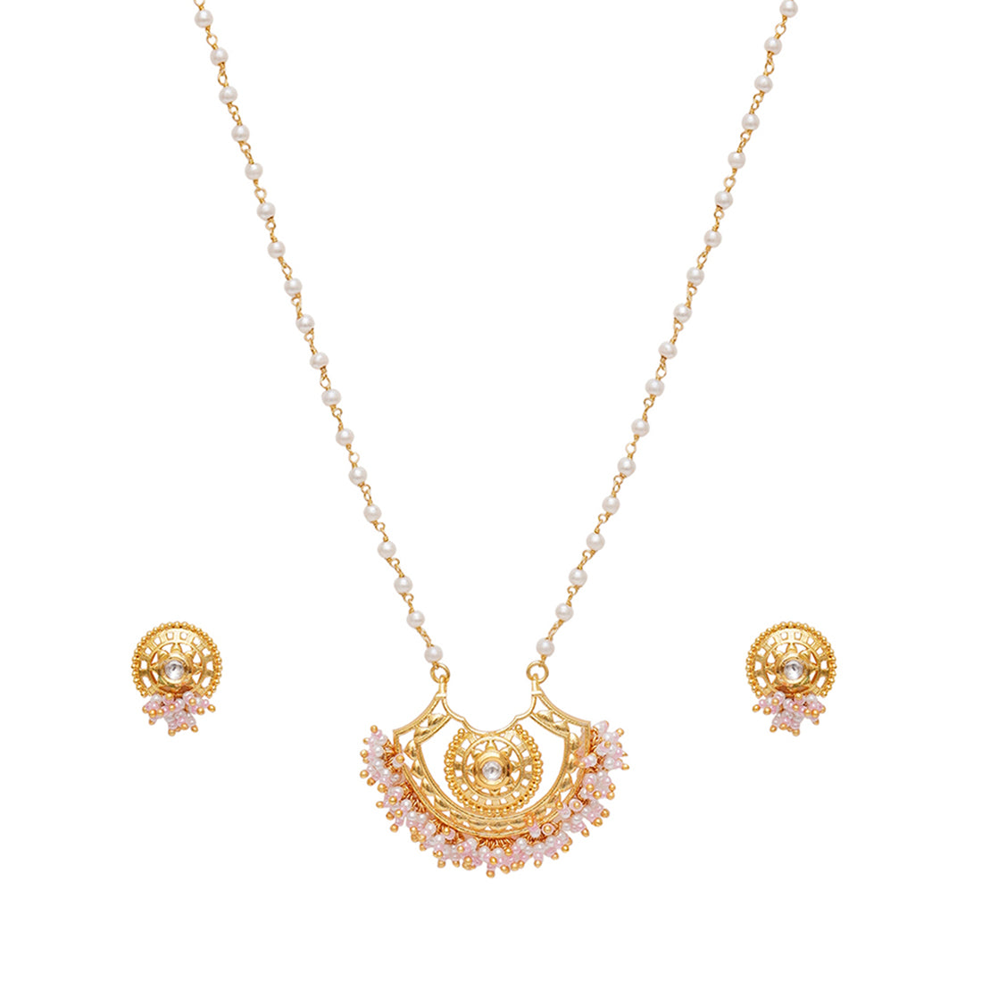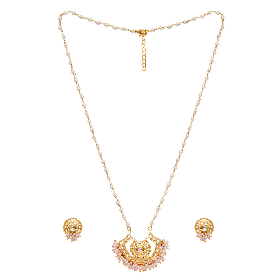 Festive Hues Long Gold Plated Jewellery Set in Pastel Pearl Chain