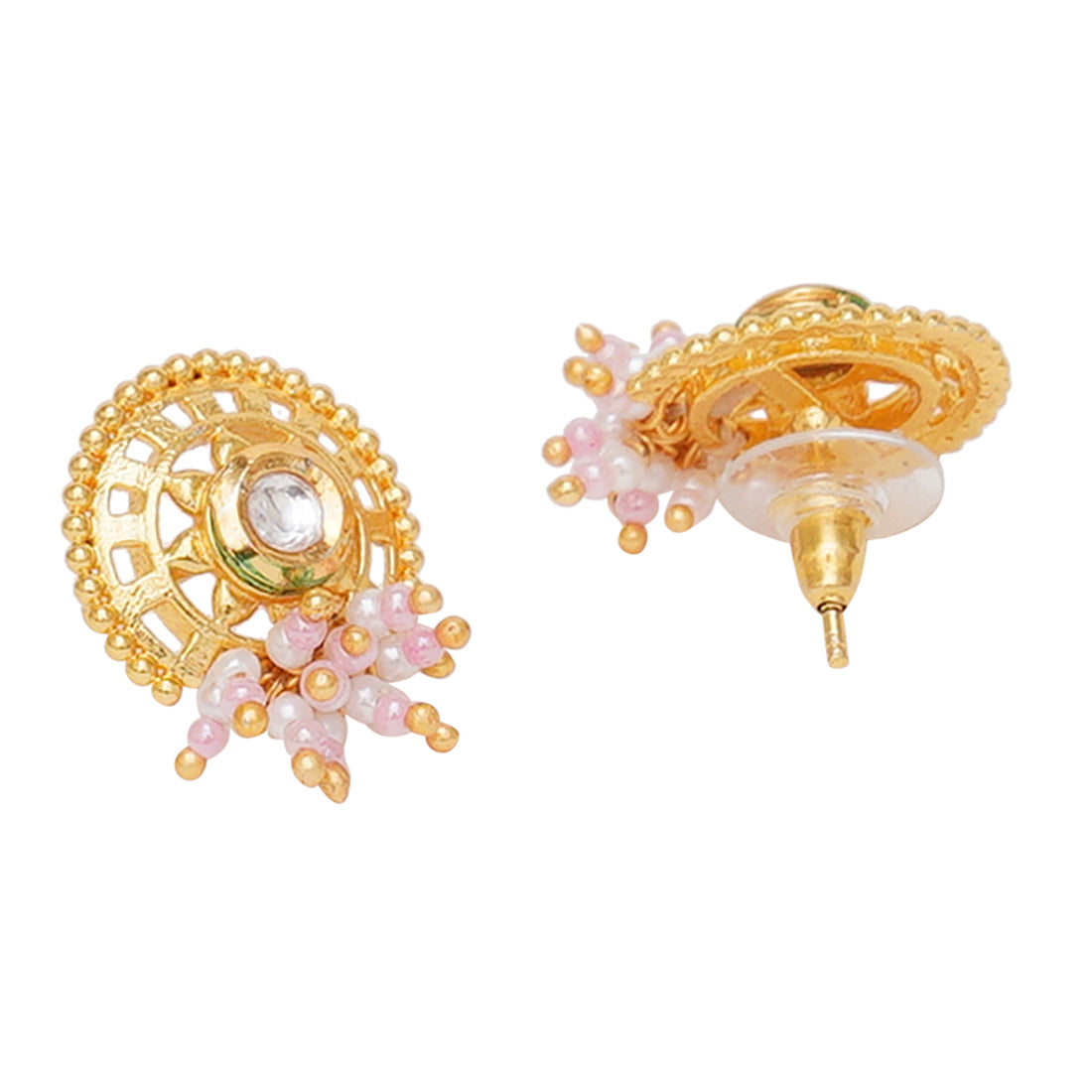 This gold-plated necklace set is an antique piece to add some glamorous style to your look. The vintage and regal feel of the pearl studded necklace set is a versatile set that you can pair up with light or heavy traditional wear. We have you covered for the festive season with this gorgeous necklace set.