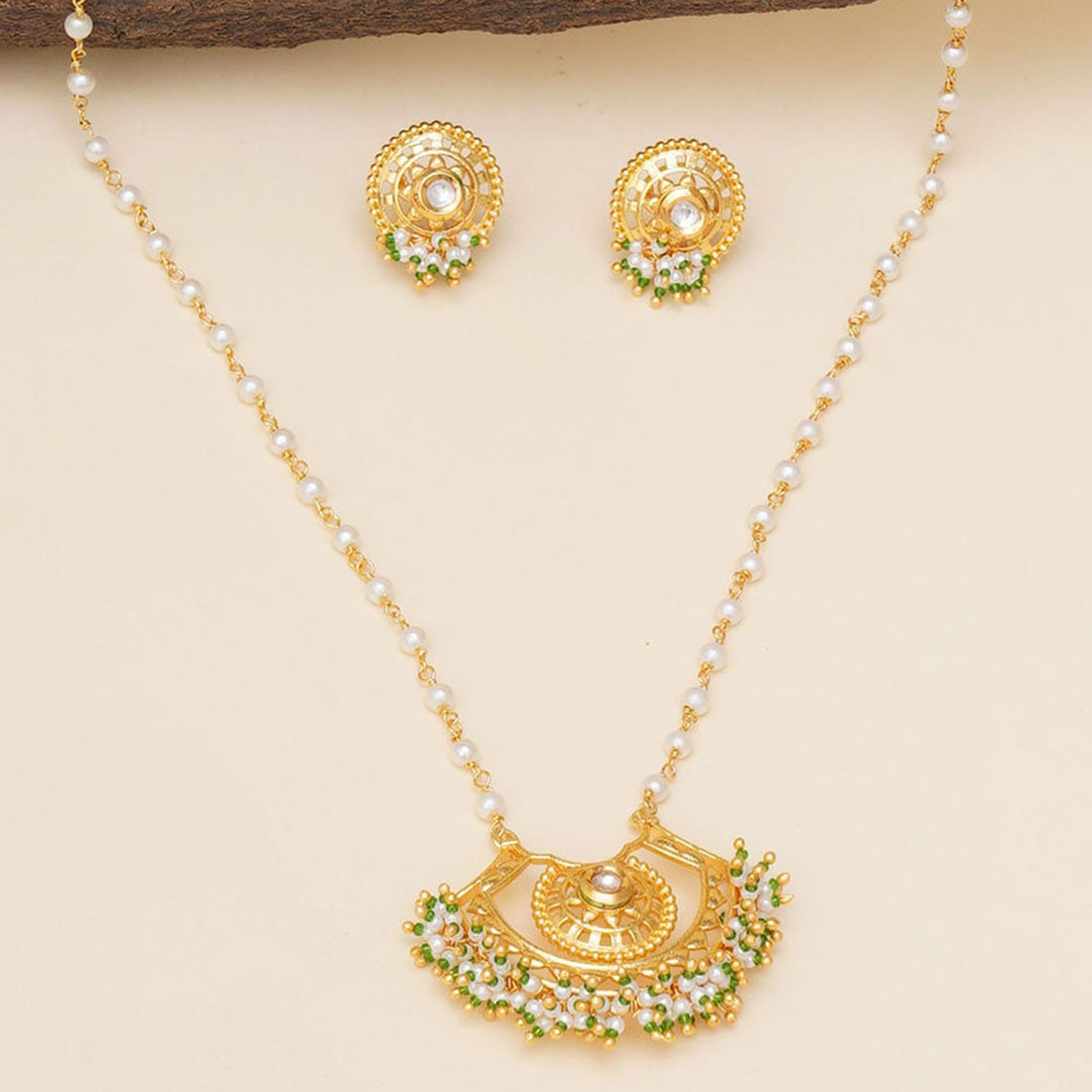 Festive Hues Long Jewellery Set in Gold and Pearl Chain