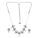Festive Hues Mirror Details Floral Silver Plated Brass Jewellery Set
