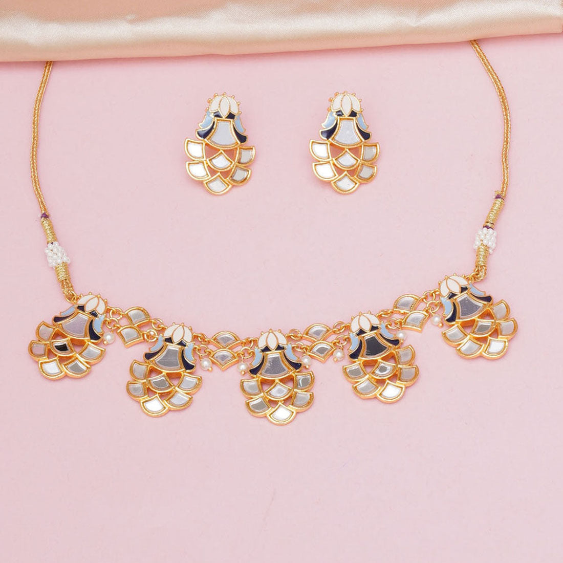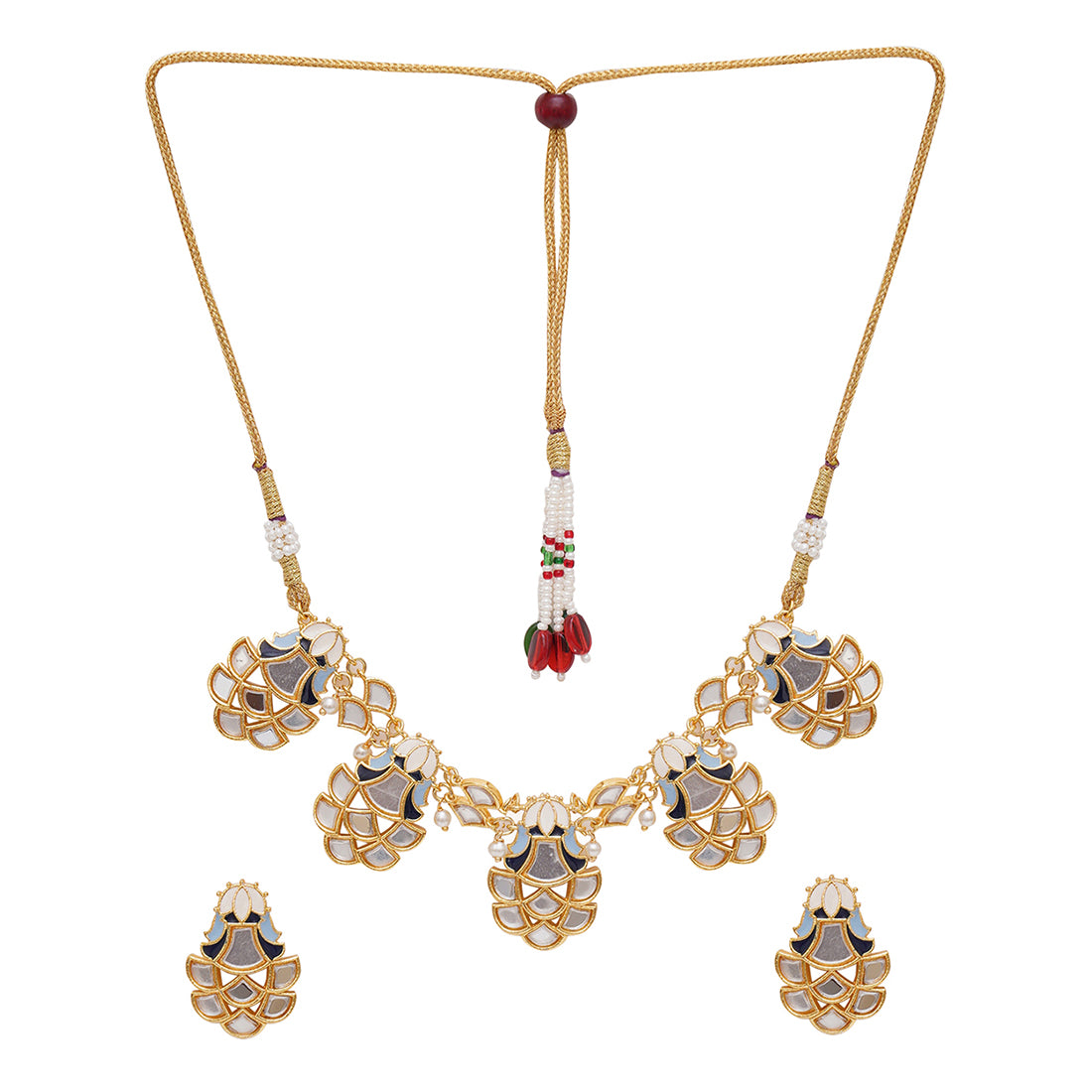 Festive Hues Mirror Work Enamelled Brass Gold Plated Choker Jewellery Set