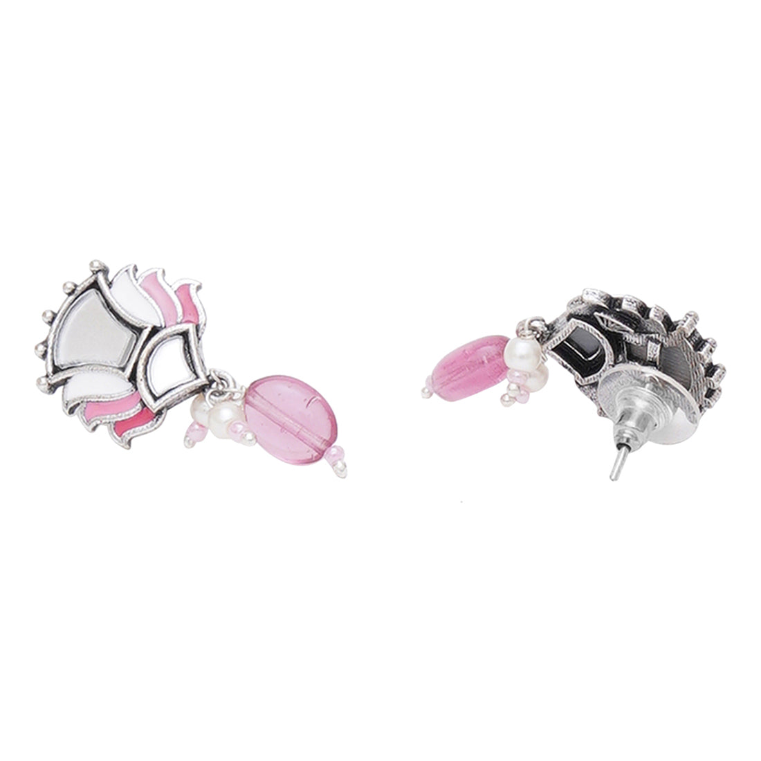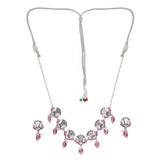 Festive Hues Mirrored Floral Motifs Brass Oxidised Silver Plated Jewellery Set