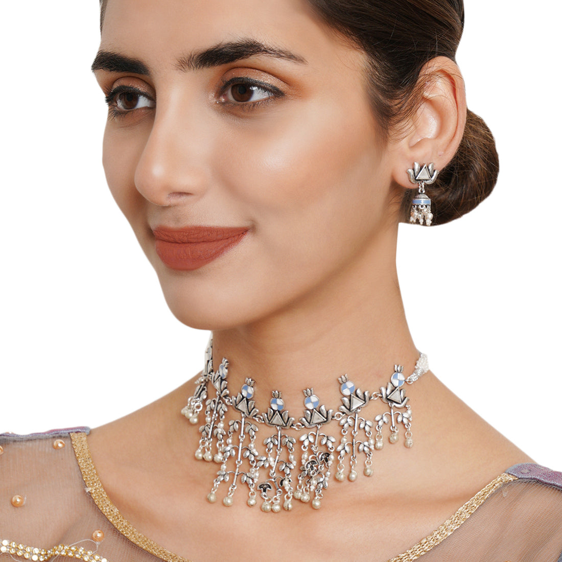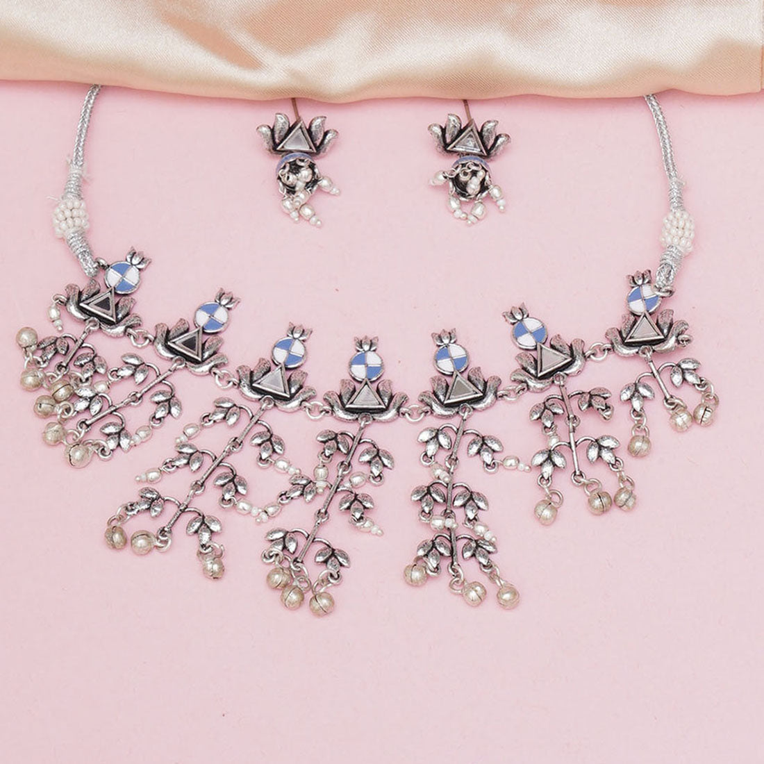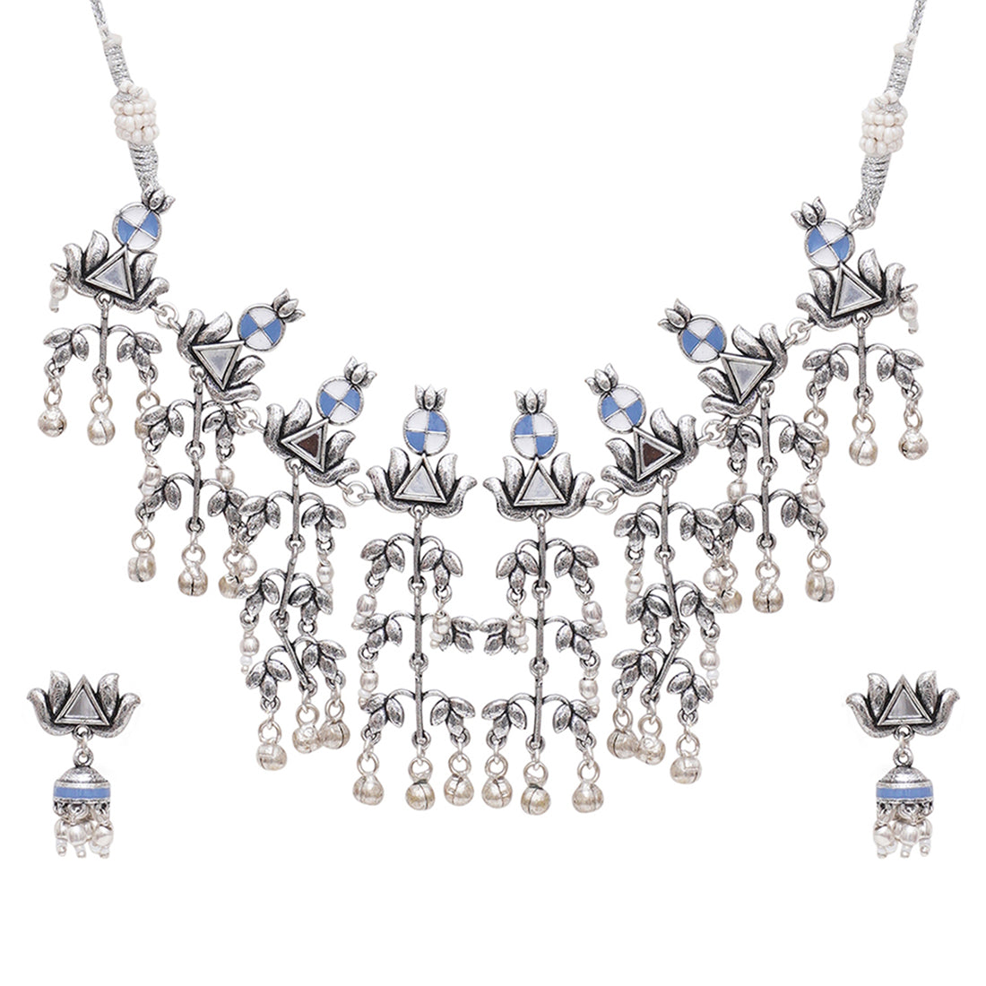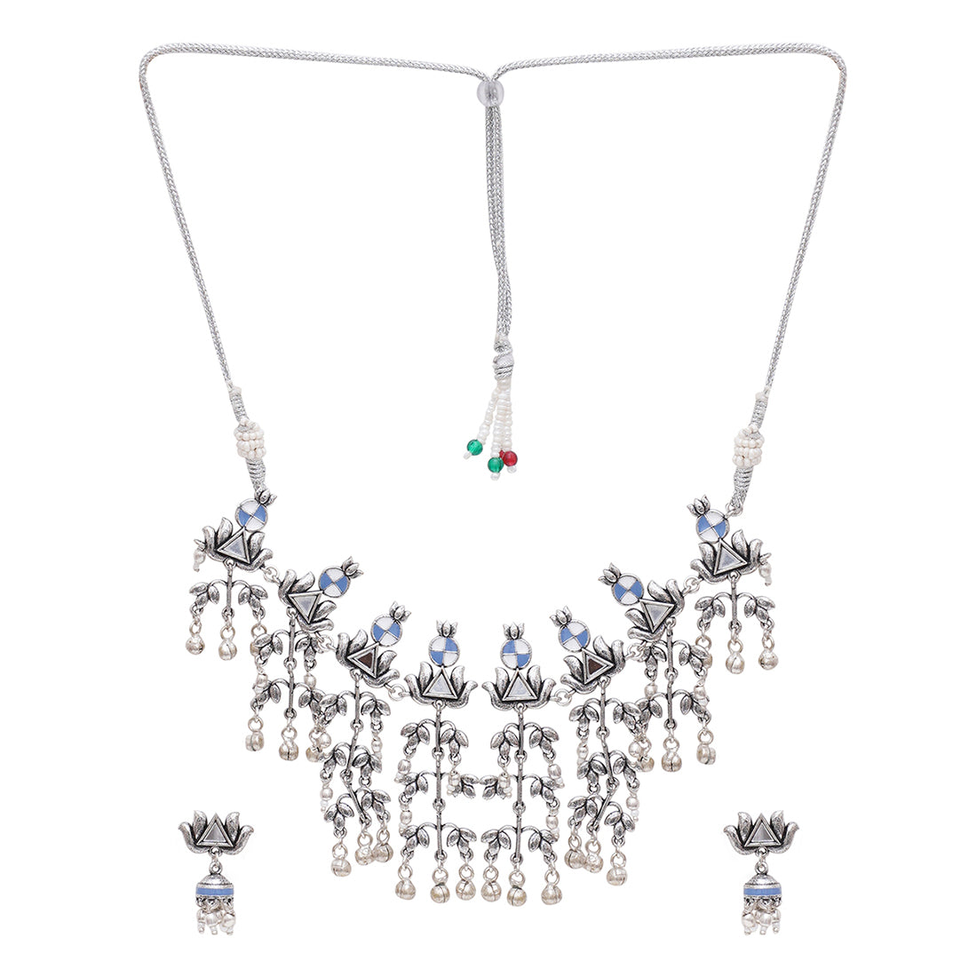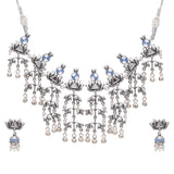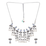 Festive Hues Silver Plated Long Fusion Blue Necklace Set
