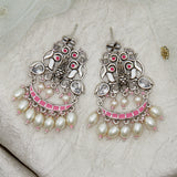 Filigree Faux Pearls Adorned Silver Plated Earrings